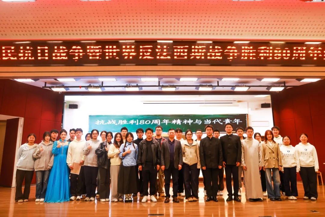华大青年讯(通讯员 刘怡宁 焦扬)为纪念中国人民抗日战争暨世界反法西斯战争胜利80周年,10月26日,法学院在文科科研楼101报告厅举办原创红色情景剧《穿越时空的对话》演出活动,学院党委副书记万枞,团委书记张永基,党务干事、本科党支部书记姜孝文,研究生辅导员陈志超,兼职辅导员刘笑妍出席活动。