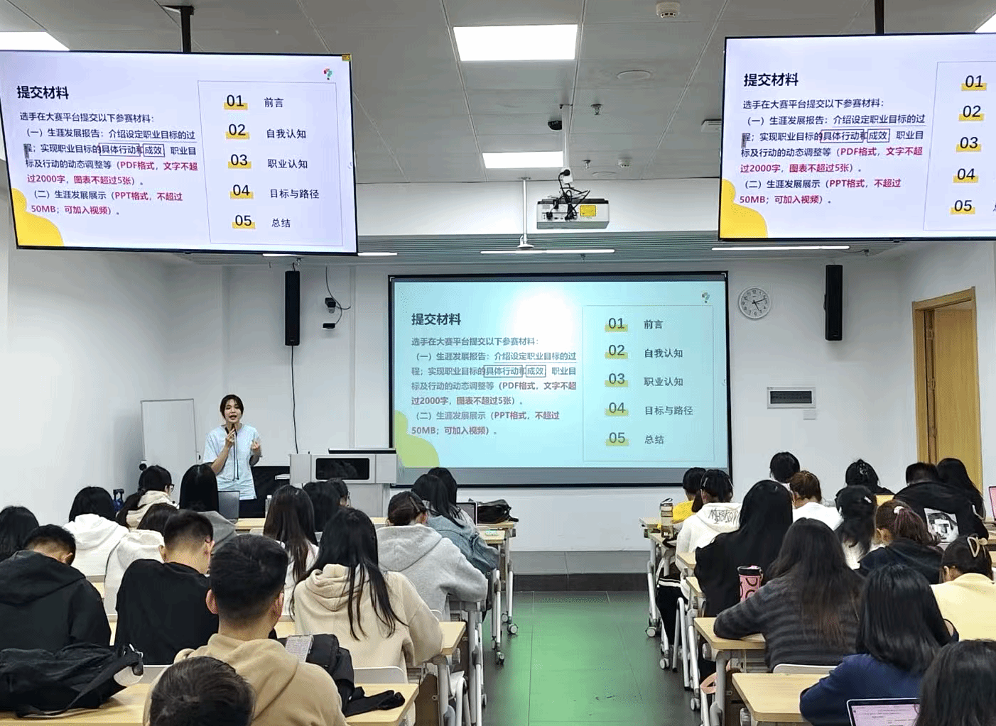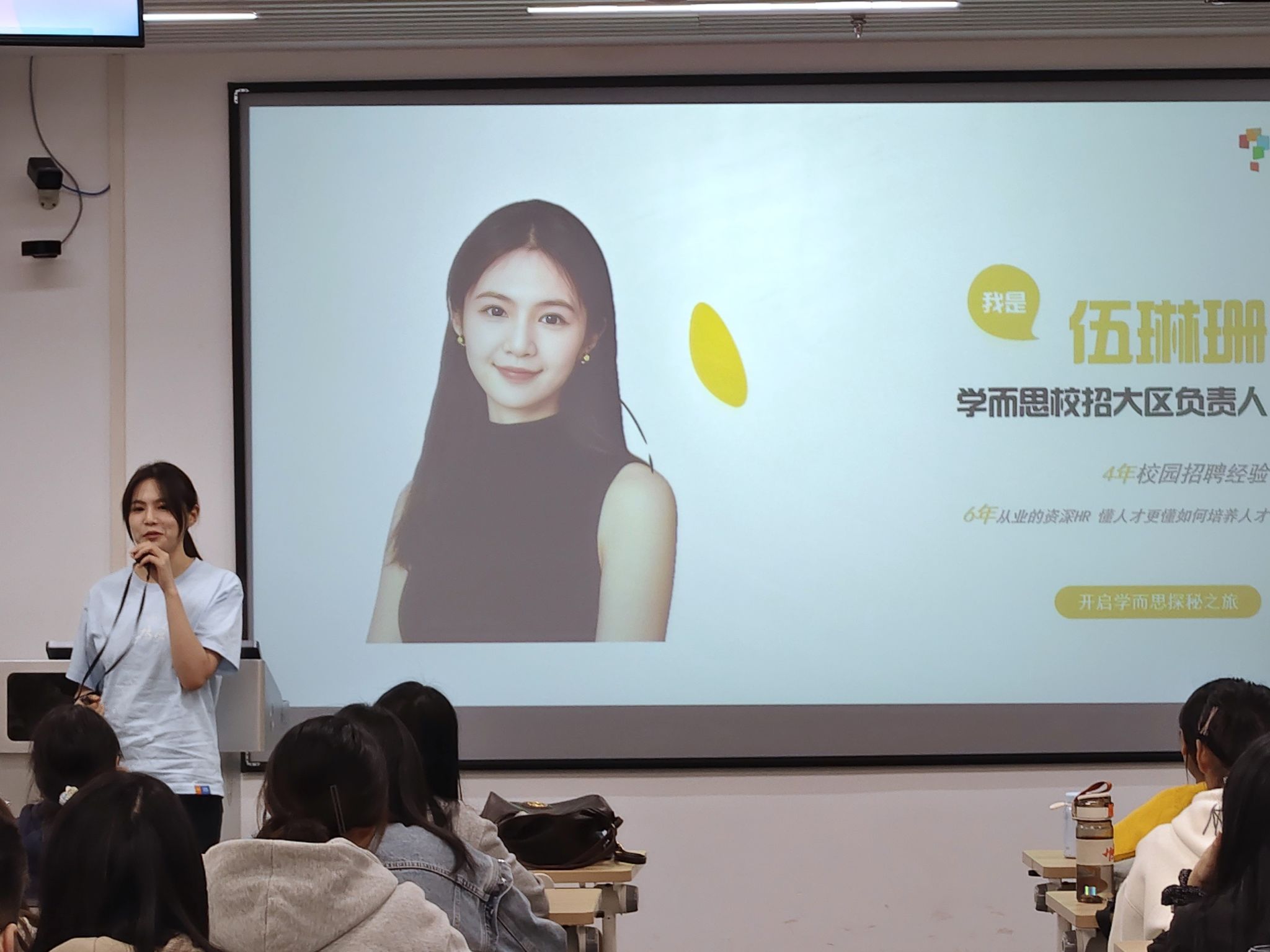 11 月 5 日,法学院103教室内座无虚席,一场干货满满的备赛指导讲座在此开展。活动特别邀请到学而思教育的伍琳珊老师担任主讲人,为参赛学生系统讲解大赛赛程安排,提供备赛指导。伍琳珊紧紧围绕 “成长”“就业” 两大赛道,结合最新的比赛评审标准,详细拆解比赛核心环节以及备赛技巧,帮助学生们更好地了解大赛的备赛要点。