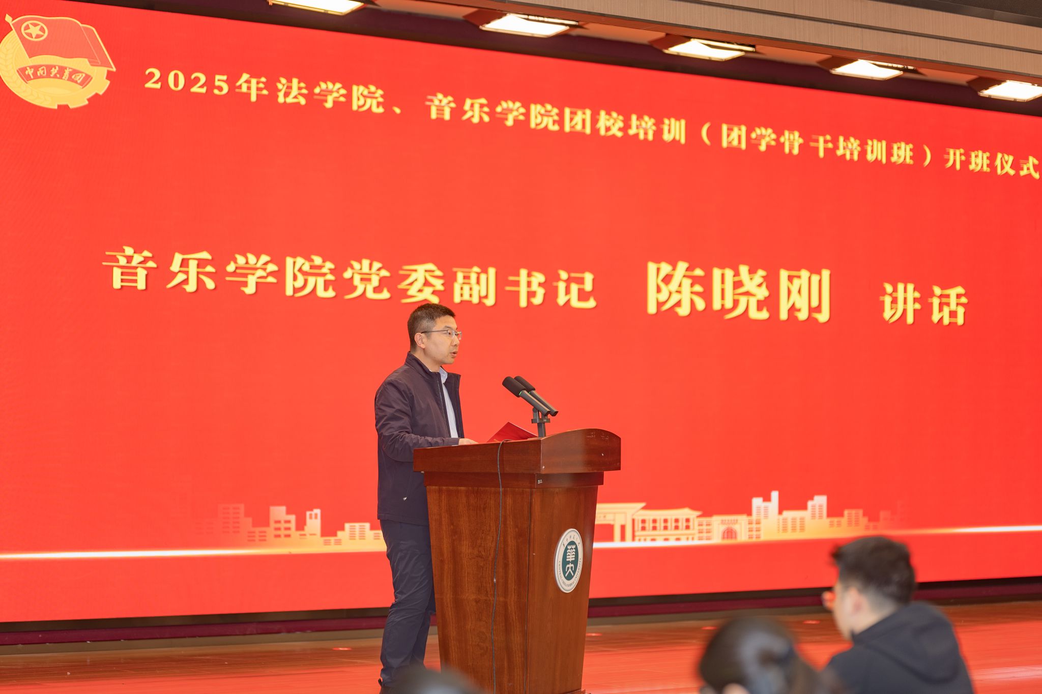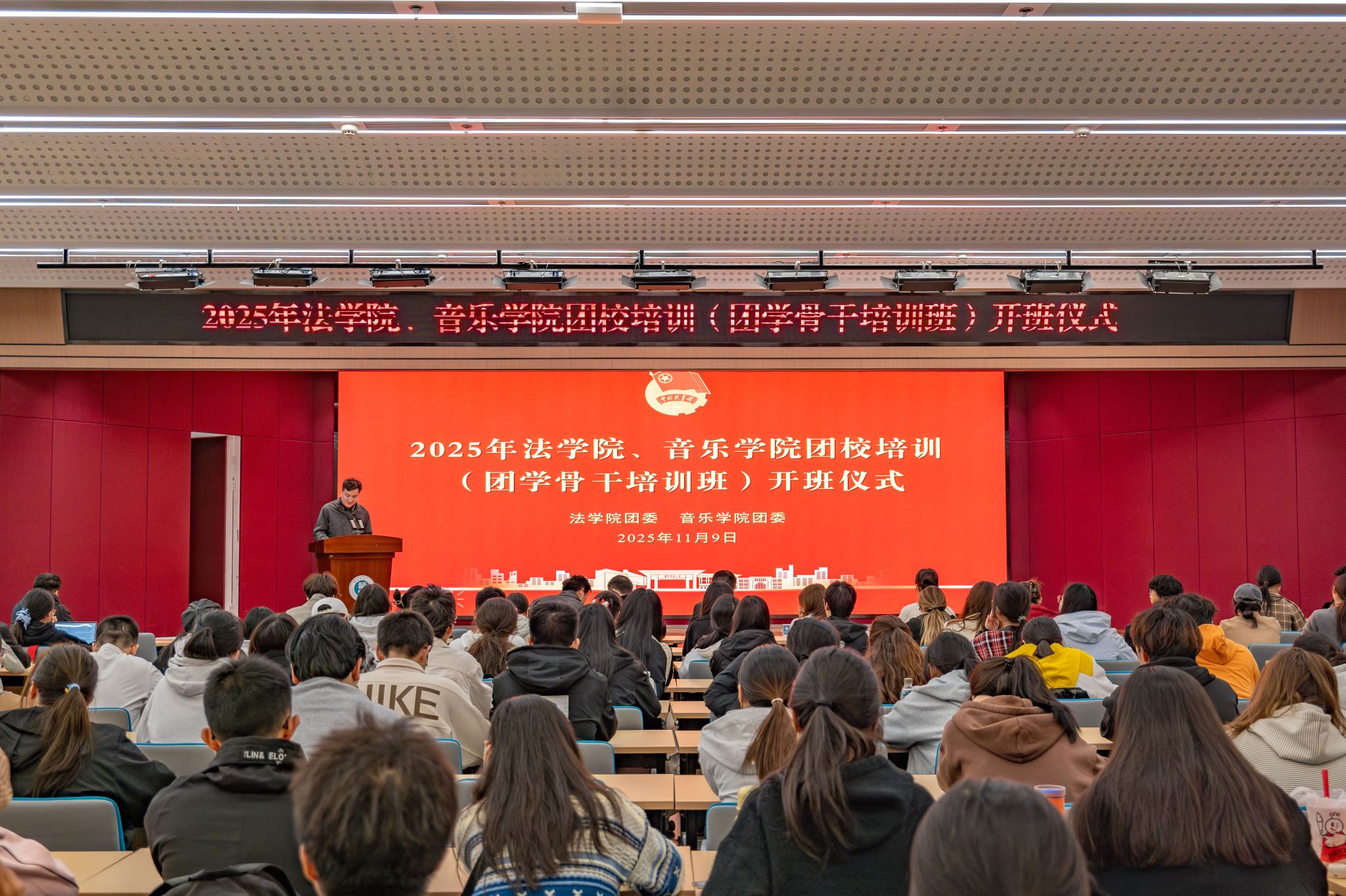 华大青年讯(通讯员 刘怡宁)11月9日,2025年法学院、音乐学院团校培训(团学骨干培训班)开班仪式在文科综合楼一楼报告厅举行。校党委组织部副部长、音乐学院党委副书记陈晓刚,法学院党委副书记万枞,团委书记张永基,团委副书记何青苗出席开班式,仪式由音乐学院团委书记陈龚泽祖主持。来自两院的百余名团学骨干学员齐聚一堂,共同开启一段学习成长之旅。