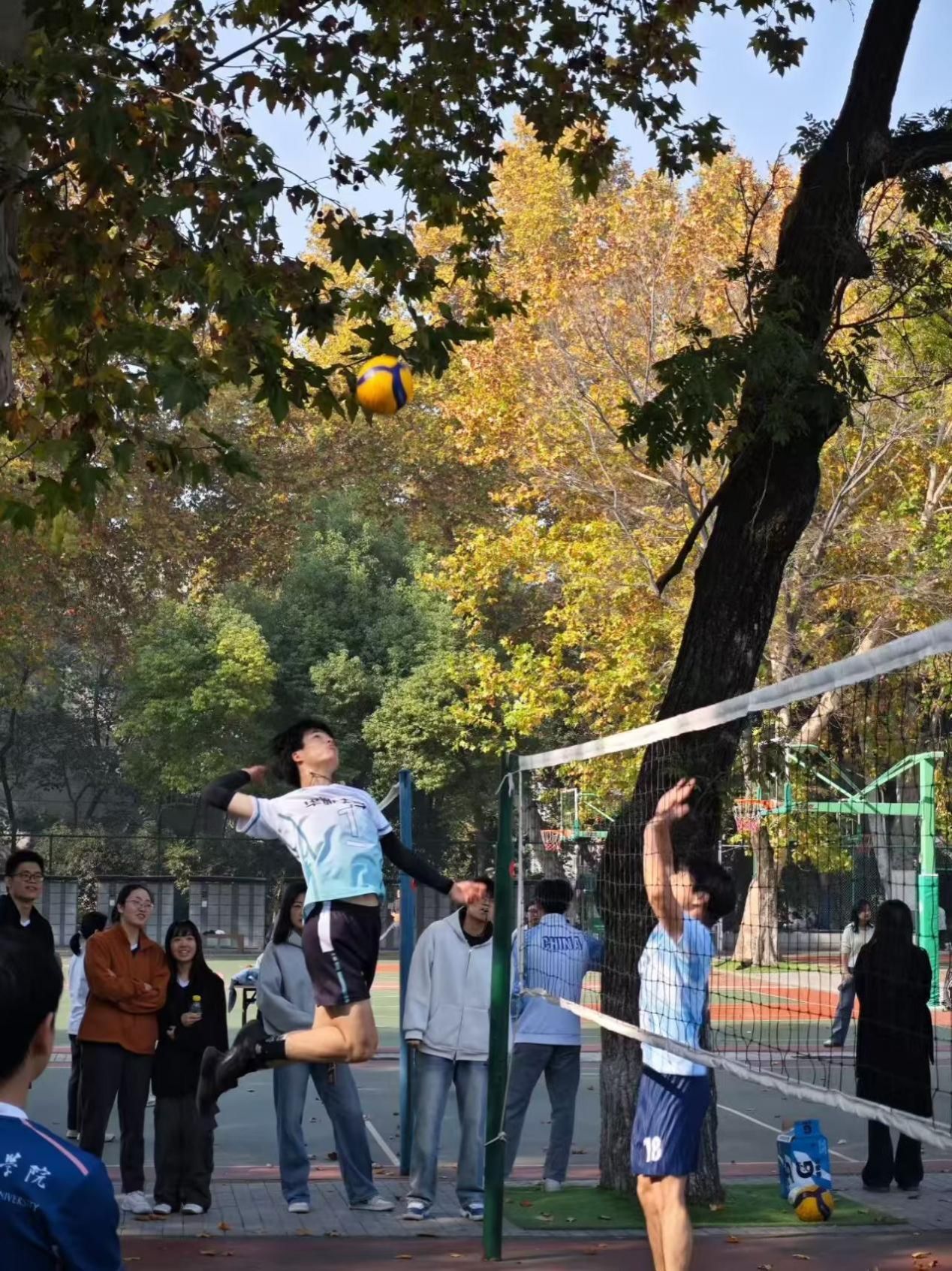 赛场上,法学院队员们的表现堪称精彩绝伦。阳光洒在跃动的身影上,每一位队员都斗志昂扬、身姿矫健。发球线上,队员们凝神聚力,一记记精准有力的跳发直逼对方场地,时而急如闪电,时而角度刁钻,成为得分利器;进攻端,主攻手们凭借出色的弹跳力与爆发力,上演着势不可挡的强力扣杀,球落地的瞬间总能引发全场惊呼;拦网与防守环节,队员们心有灵犀、配合无间,一次次默契十足的集体拦网成功化解危机,一回回奋不顾身的倒地扑救将看似无望的球救起,用汗水诠释着 “不放弃、不抛弃” 的体育精神。