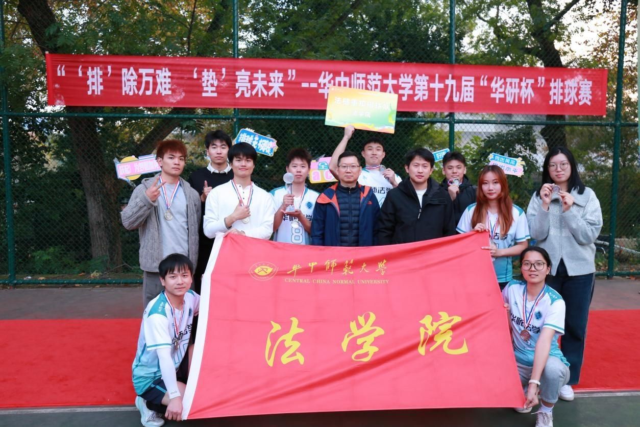 华大青年讯(通讯员 赵仪琳 吴绍金)11 月 22 日,第十九届华中师范大学 “华研杯” 排球赛在露天球场的欢呼声中圆满落幕。历经数周的激烈角逐,法学院排球队凭借顽强的拼搏精神与默契的团队协作,一路过关斩将,从众多强队中脱颖而出,最终荣获本届赛事亚军,取得了历史性的佳绩。