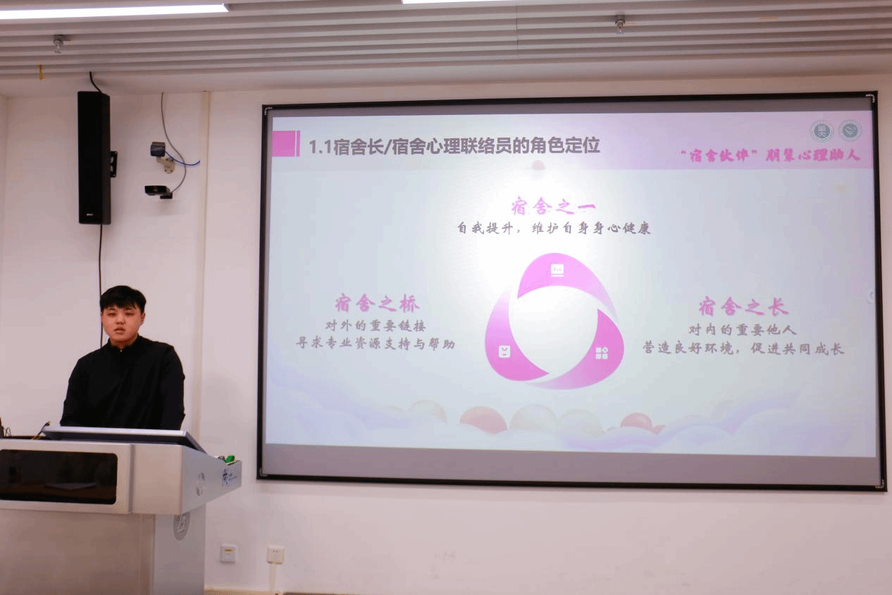 活动伊始,高庭仪详细解读了培训班整体方案。她从“夯实寝室基础建设”“提升朋辈互助能力”“筑牢心理健康防线”三大核心目标出发,明确了后续将通过专题讲座、经验分享、案例研讨、实操演练等多元形式开展培训,内容涵盖寝室人际关系协调、心理危机识别与干预、集体凝聚力培育等重点模块,为寝室长们搭建了系统学习、交流共进的平台。