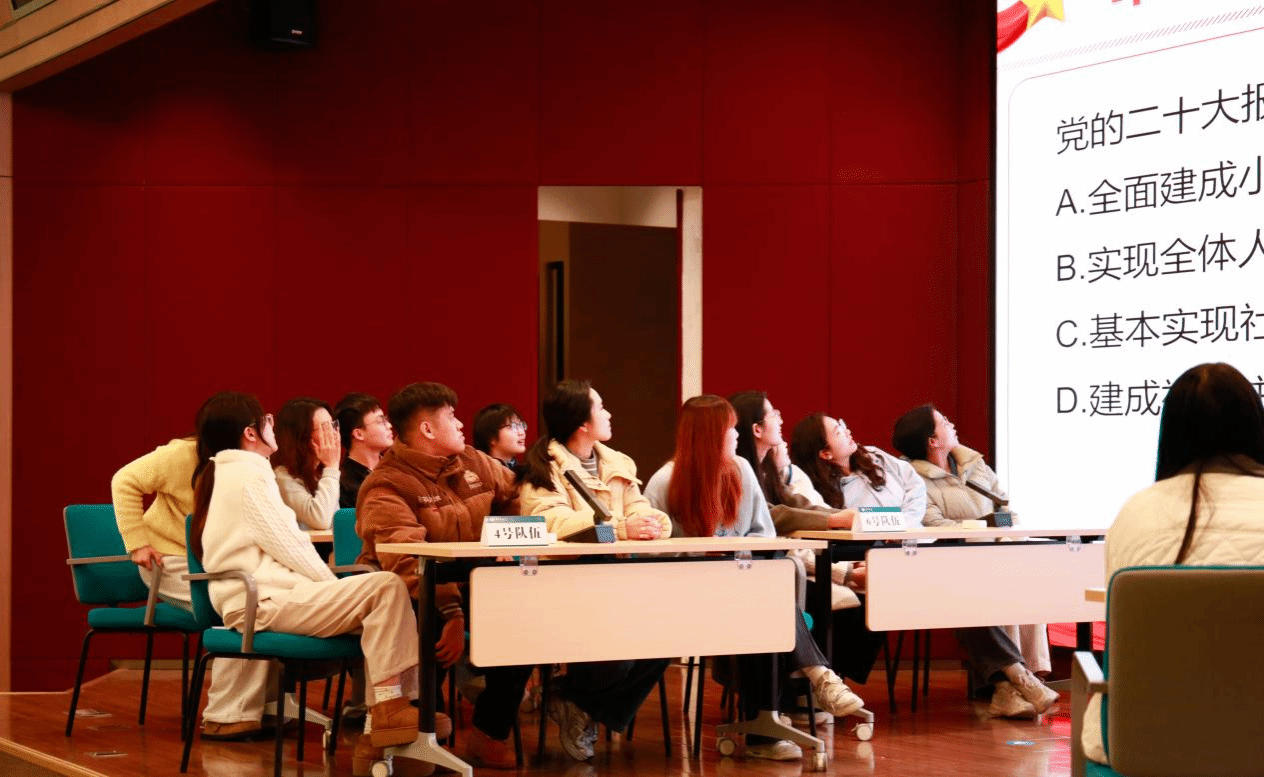 比赛伊始,六支队伍依次登场,分别回答一组单选题。题目内容涵盖党的重大历史事件、重要理论成果、革命精神谱系等基础知识点。各队选手沉着冷静,应答如流,展现出扎实的党史知识储备。这一环节不仅是对基本功的检验,更是一次生动的集体学习。一轮过后,四支队伍凭借稳健发挥晋级。