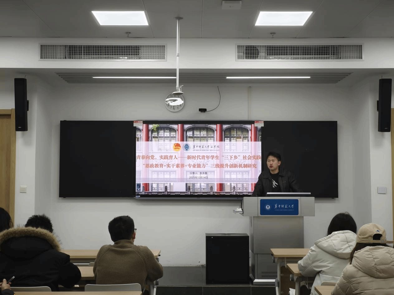 黄子鑫结合个人经验,分享了依托学院暑期社会实践平台、整合现有条件并关注外部信息的实践思路,提出以铸魂赋能打造“返家乡”实践育人平台长效服务机制,鼓励青年学子深入基层实践、争做敢为先锋。