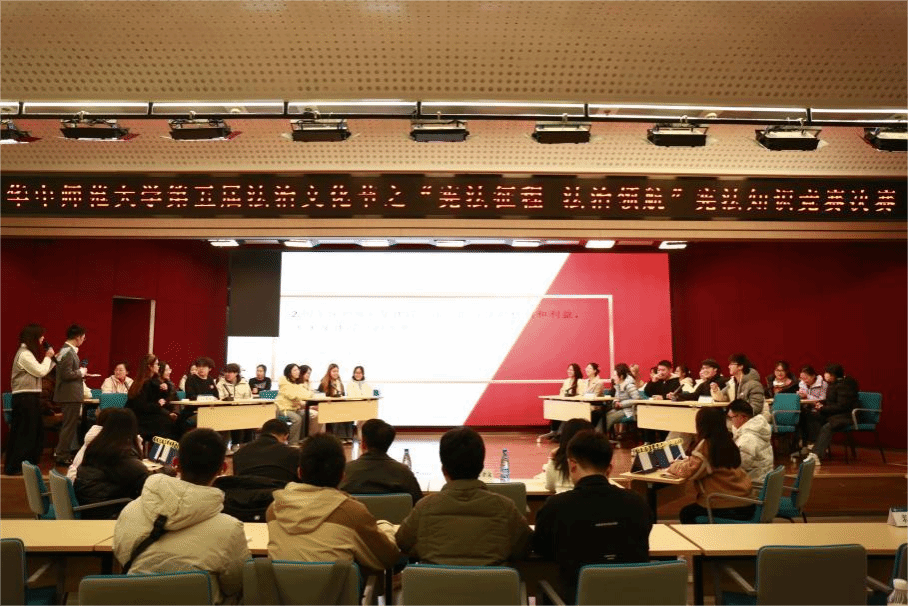 华大青年讯(通讯员 向文婷 张哲希 刘凯风)随着全国第十二个“国家宪法日”如期而至,为弘扬宪法精神,维护宪法权威,推动全校形成尊崇宪法、学习宪法、维护宪法、遵守宪法的良好氛围,加深同学们对宪法的认识,12月13日晚,华中师范大学第五届法治文化节组委会于文科综合楼101报告厅开展“法治征程,宪法领航”知识决赛。法学院团委书记张永基、法学院研究生辅导员陈志超、校研究生会文艺体育中心负责人潘优出席活动。