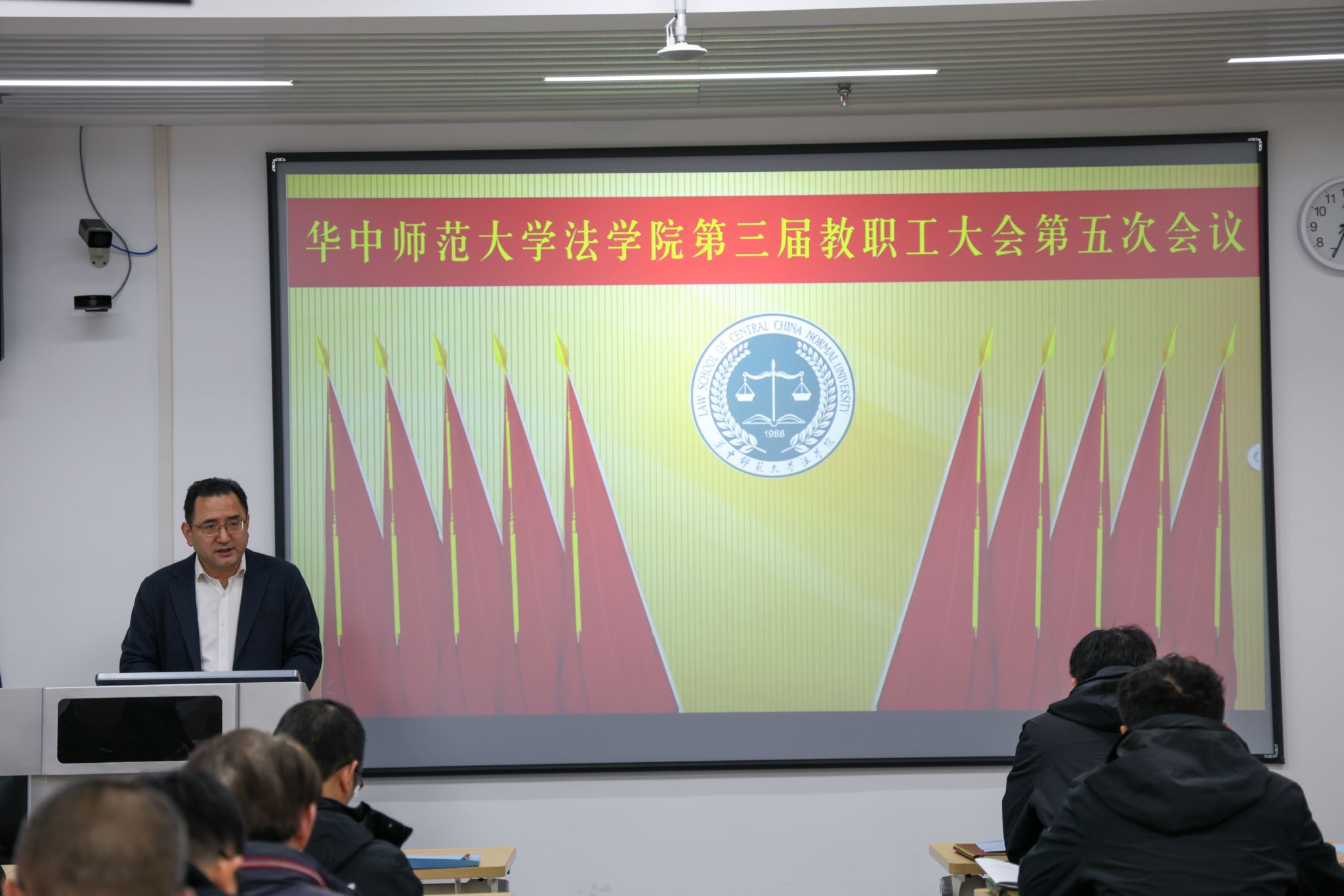 学院党委书记张扬在讲话中对各位教职工以主人翁的心态,为学院发展想办法、出实招表示衷心感谢,他表示,2026年是中国共产党成立105周年,是贯彻学校第十三次党代会精神和“十五五”开局起步之年,要稳扎稳打、团结奋进,做好各项工作,他希望老师们眼光放远,找准定位,扛起新时代法学人的使命担当;站稳讲台,用心育人,把法治信仰种进学生心里;同心同向,抱团发力,共建有温度、有归属感的大家庭。