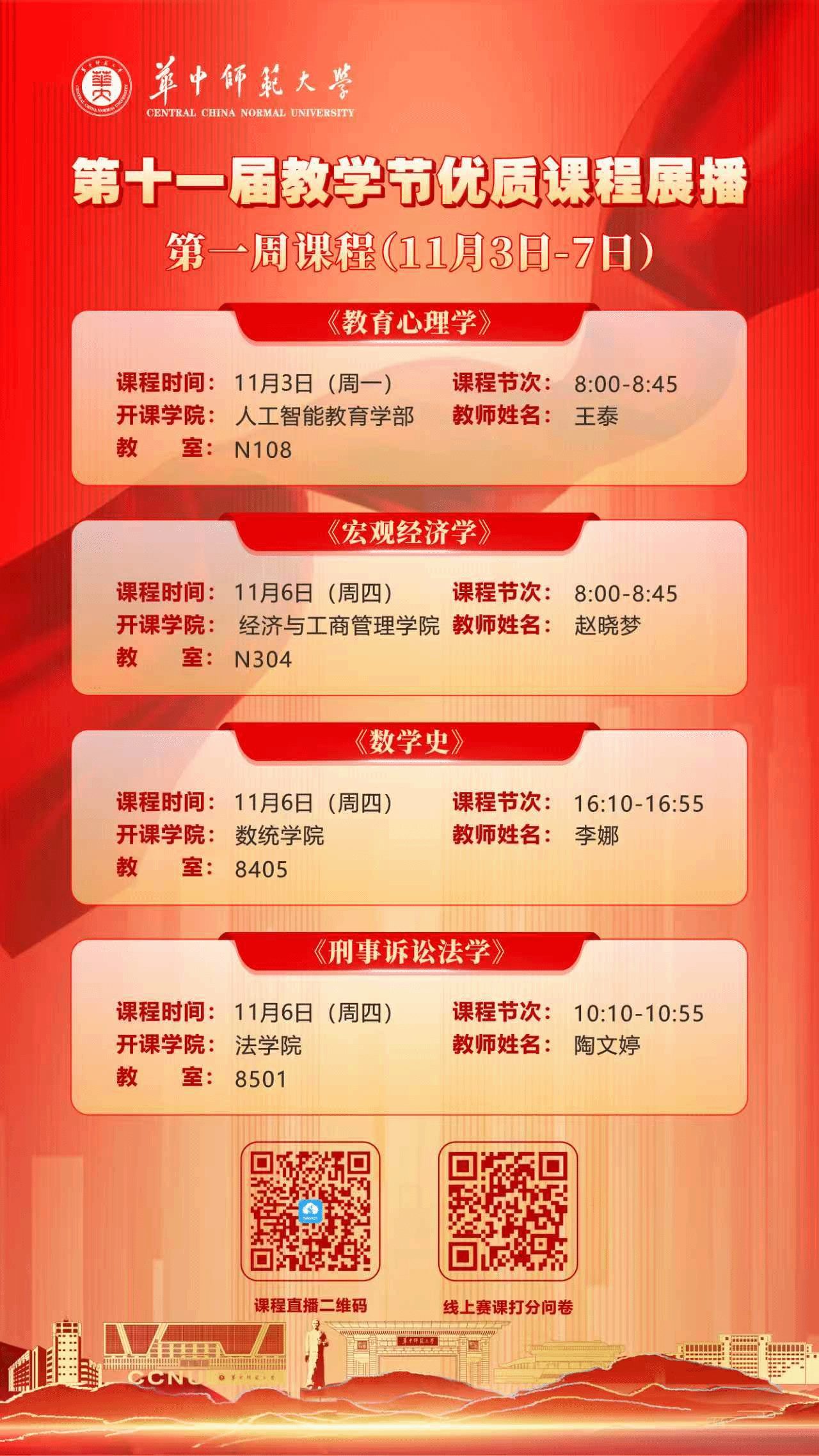华大青年讯(通讯员 陶文婷 陈润涵)3月24日,学校第十一届教学节本科优质课程展播暨学生“心目中的好课堂”评选活动落下帷幕。法学院在此次评选中表现突出,荣获“优秀组织单位”称号,法学院教师刘元璋、陶文婷主讲的《刑事诉讼法学》课程荣获一等奖,此次展播由陶文婷讲授。两项荣誉的获得,充分体现了学校对法学院本科教学组织工作与课程建设成效的高度肯定。