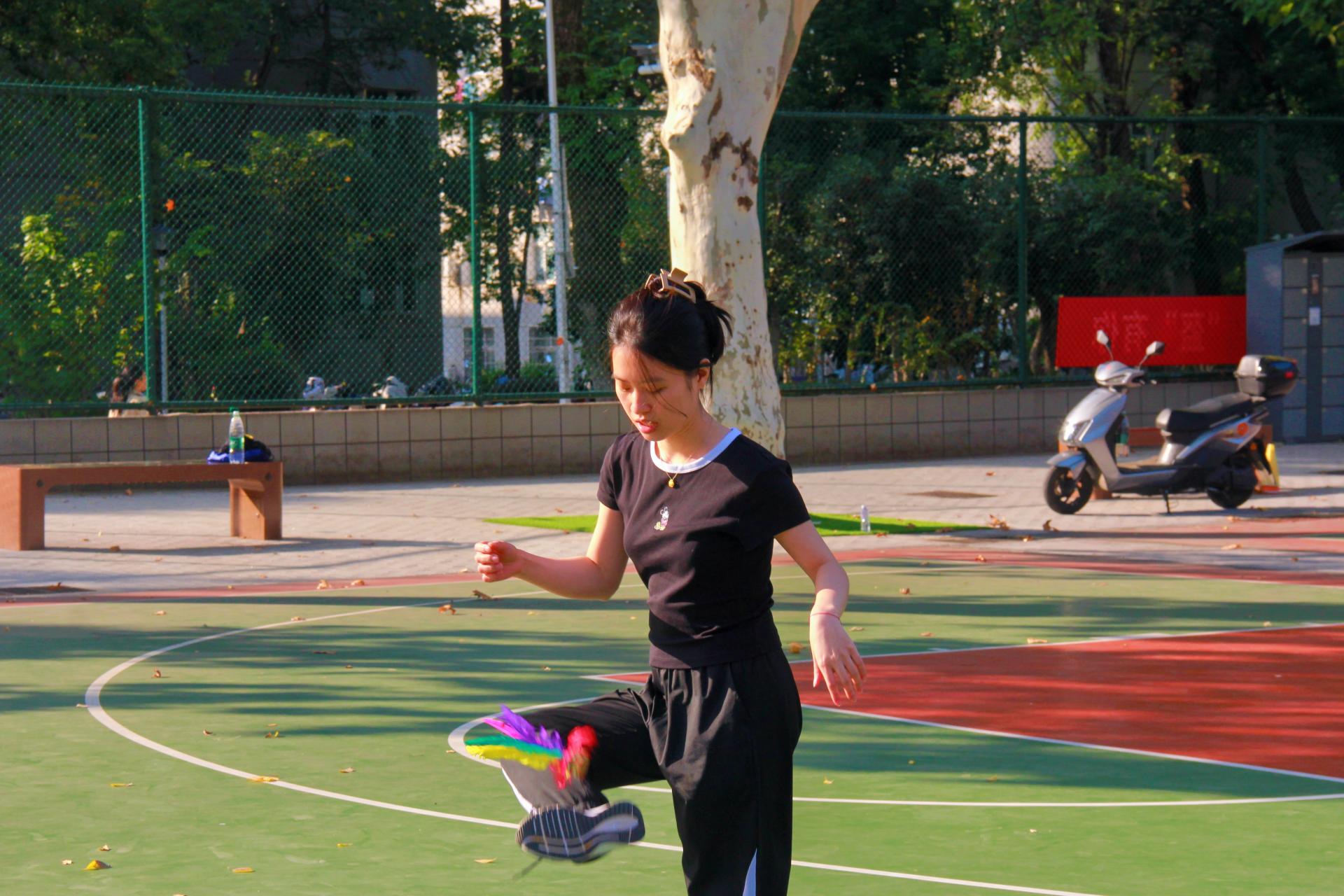 毽球比赛中, 黄佳乐等20名运动员代表法学院参加。运动员们全神贯注,控制好方向和力道,随着毽球的轨迹变换着动作,在有限的时间内达成更多的次数。抬腿、跳跃、转身……七彩的毽球在空中划出一道道弧线,上下翻飞。经过激烈的角逐,法学院凭借出色的整体表现和稳定的发挥,取得了第七名的好成绩。