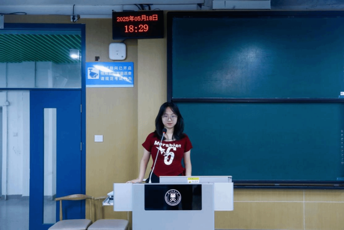随后,2024级学硕团支部团支书杨梦雨结合胡一心的志愿活动经历,向同学们详细解读了习近平总书记的重要讲话和给谢依特小学戍边支教西部计划志愿者服务队队员回信精神的核心要义。为了让同学们更直观地感受精神内涵,杨梦雨播放了一段新闻联播视频,视频中展现了谢依特小学戍边支教志愿者们的动人故事。