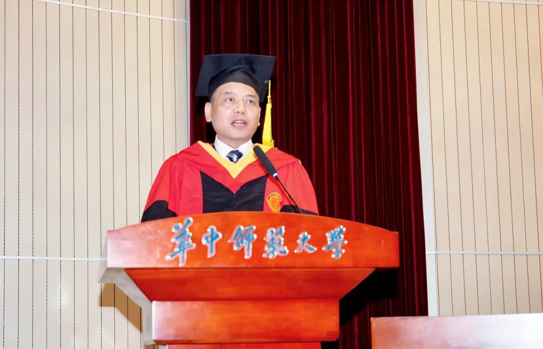 刘继文在致辞中代表学校党委和行政向全体毕业生表示诚挚祝贺,他表示,同学们怀着对法学的热爱、对知识的渴望、对理想的憧憬,在华师走过求学之路、奋进之路,成就了青春最好模样。寄语未来,他向毕业生提出了三点建议。一是从高处“着眼”,树立“鸿鹄之志”,以“长远志气”引领前行方向。他希望毕业生与党同心、与祖国同行、与人民同在,为建设更高水平法治中国贡献生生不息的青春力量;二是从心底“着手”,锤炼“刚正风骨”,以“浩然正气”彰显华师底色。他希望毕业生强化廉洁意识、纪法意识、规则意识、程序意识,在同违法犯罪做斗争中净化土壤空气、在惩恶扬善中捍卫公平正义;三是从远处“着力”,练就“过硬本领”,以“强大底气”书写前行答卷。他希望毕业生始终葆有对新技术的好奇、对新知识的饥渴、对新实践的探索,在社会主义法治建设的壮阔征程中,书写属于新时代法学青年的精彩华章。