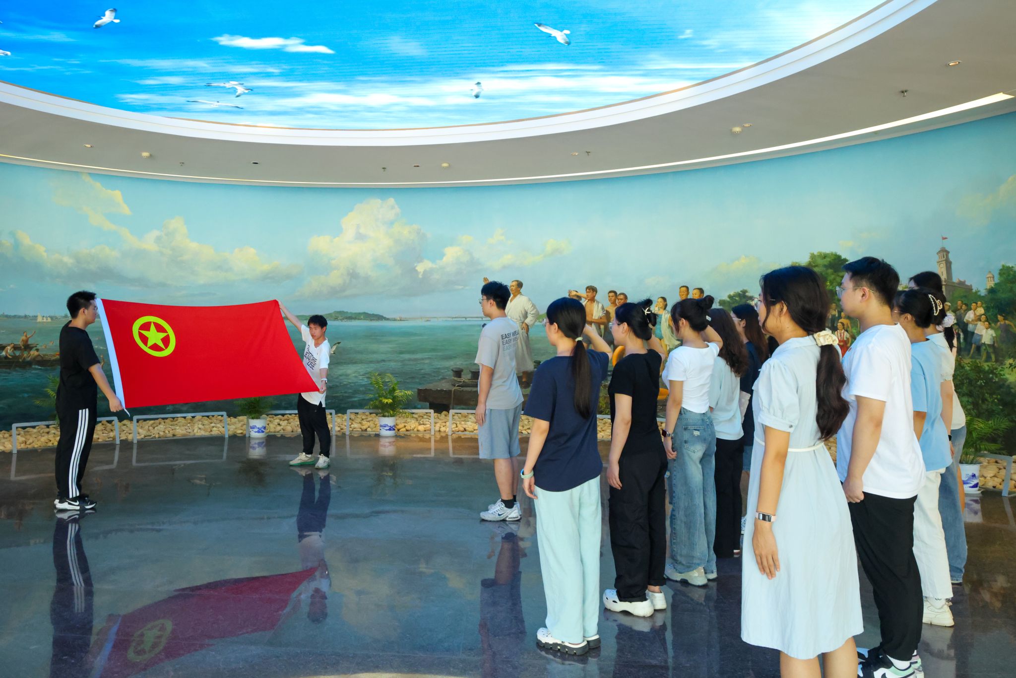 “我志愿加入中国共产主义青年团,坚决拥护中国共产党的领导,遵守团的章程,执行团的决议,履行团员义务,严守团的纪律,勤奋学习,积极工作,吃苦在前,享受在后,为共产主义事业而奋斗。”参观结束后,团队全体成员在博物馆大厅内整齐列队,面向团旗,庄严重温入团誓词,在誓词声中感受中华民族自强不息的“老黄牛精神”。
