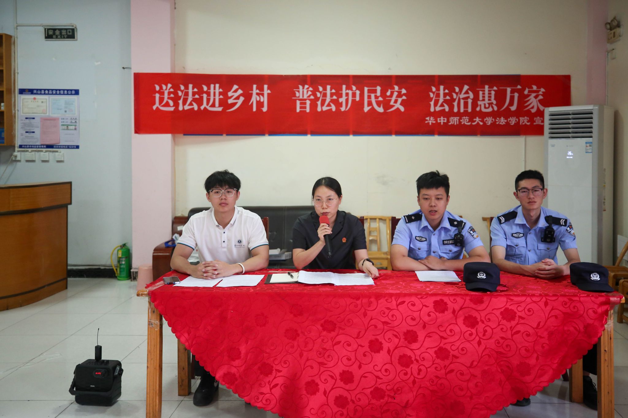 华大青年讯(通讯员 冷冰泠 蔡圆)为增强居民法治意识,营造尊法守法用法的良好氛围,7月17日上午,华中师范大学法学院“百所观察”实践队联合峡口镇人民政府社会事务和平安建设办公室、派出所、派出法庭共同举办“法治护航,惠民同行——法治嘉年华系列活动”。这场集宣讲、互动、体验于一体的“送法下乡”,让法律知识走进群众生活,成为乡镇法治宣传的生动实践。