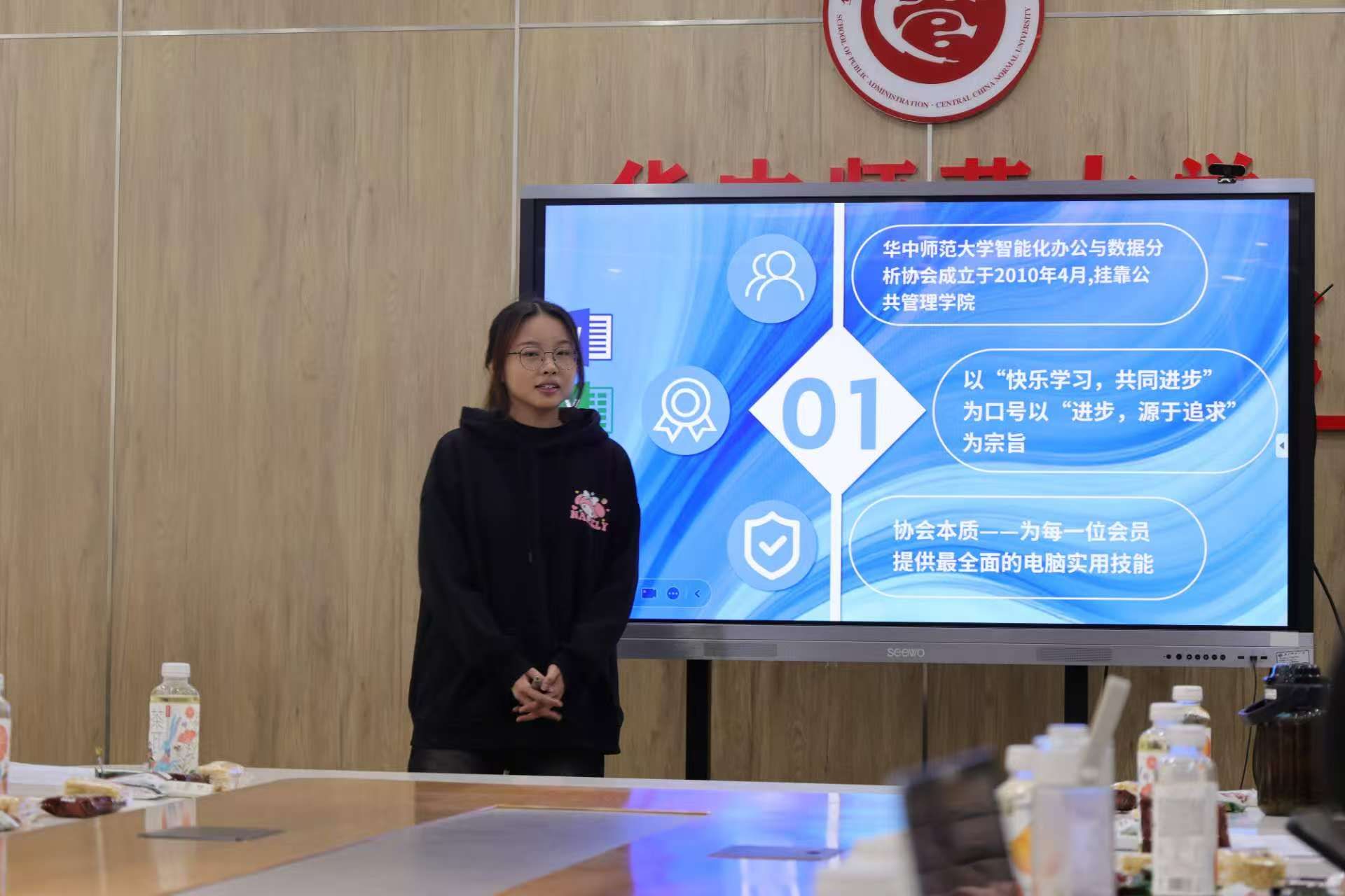 在展示环节,智能化办公与数据分析协会、社会保障青年学社、管理学社及辩论队代表依次发言,分别围绕技能提升、专业拓展、学术研讨及赛事经验等方面,汇报了本学期的工作成果与特色活动,充分展现出各组织以学术为主线开展实践探索的积极成效。
