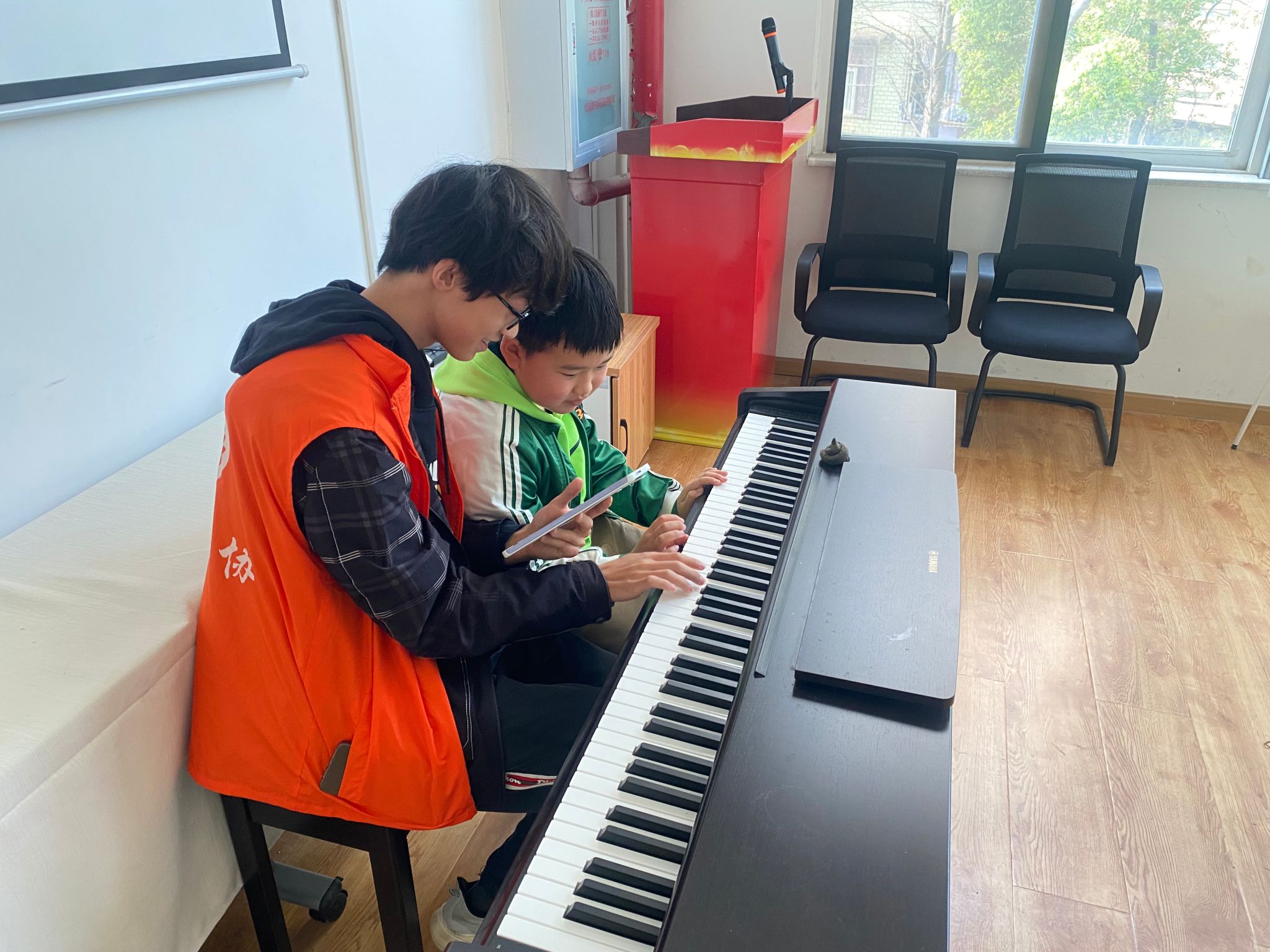 课业辅导结束后,志愿者带领小朋友们来到二楼活动室,组织开展猜拳互动、创意手工与钢琴体验等趣味游戏。在轻松愉快的氛围中,孩子们与志愿者一起动手创作、尽情玩耍,既放松了身心,也锻炼了反应能力与协作意识。活动期间,志愿者全程陪伴在小朋友们身边,时刻关注他们的安全,及时提醒远离健身器材等潜在危险区域。