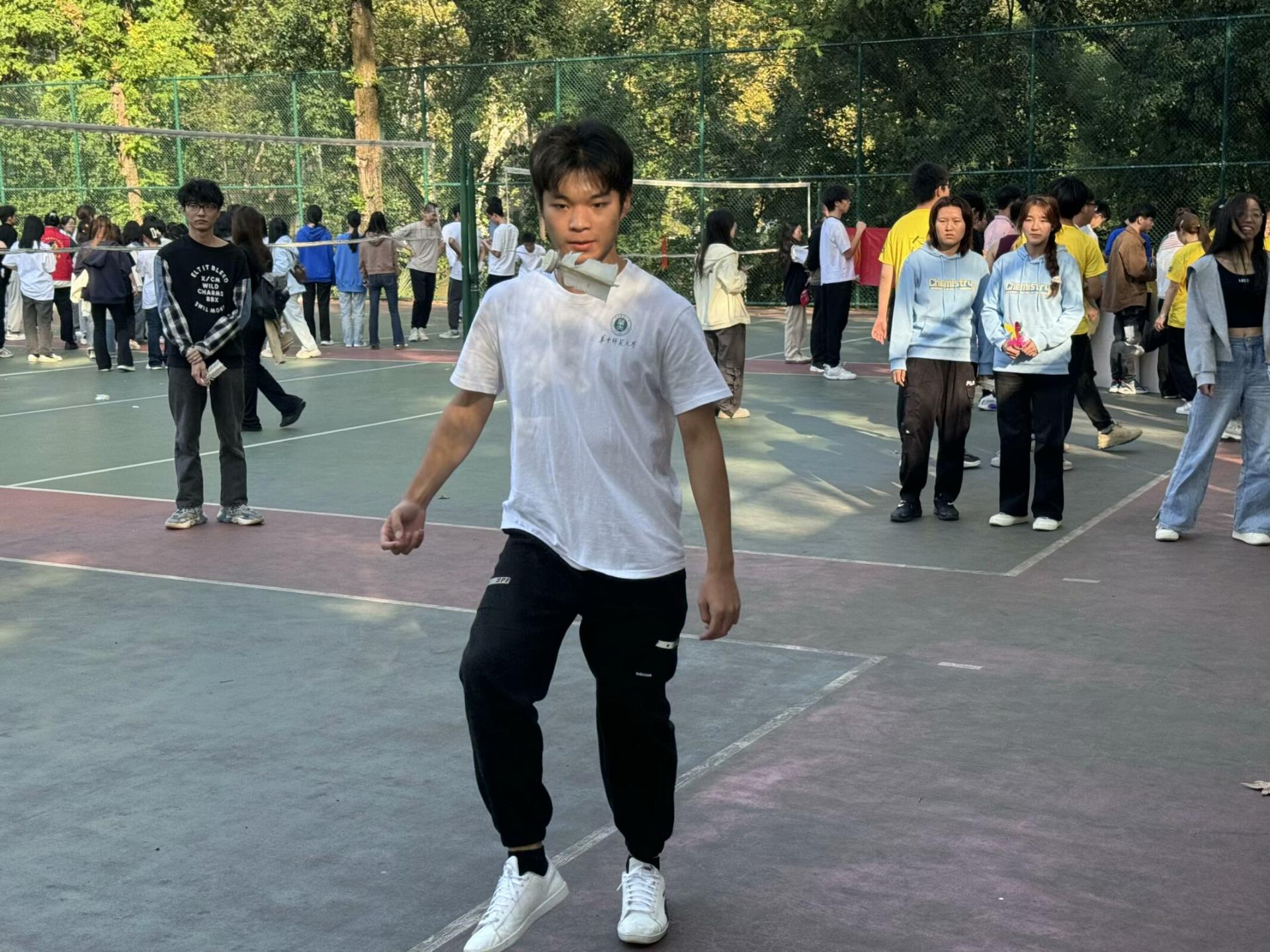 与此同时,在毽球比赛中,化院的20余名运动员同样表现出色。他们面对强大的对手和紧张的氛围,始终保持沉着冷静,从容应战。赛场上,毽球在空中上下飞舞,选手们身姿矫健,步伐灵活,展现出了精湛的技艺和不斐的实力。经过一分钟的激烈角逐,化院毽球代表队勇夺卓绩,充分展现了化院学子顽强拼搏、团结协作的体育精神。