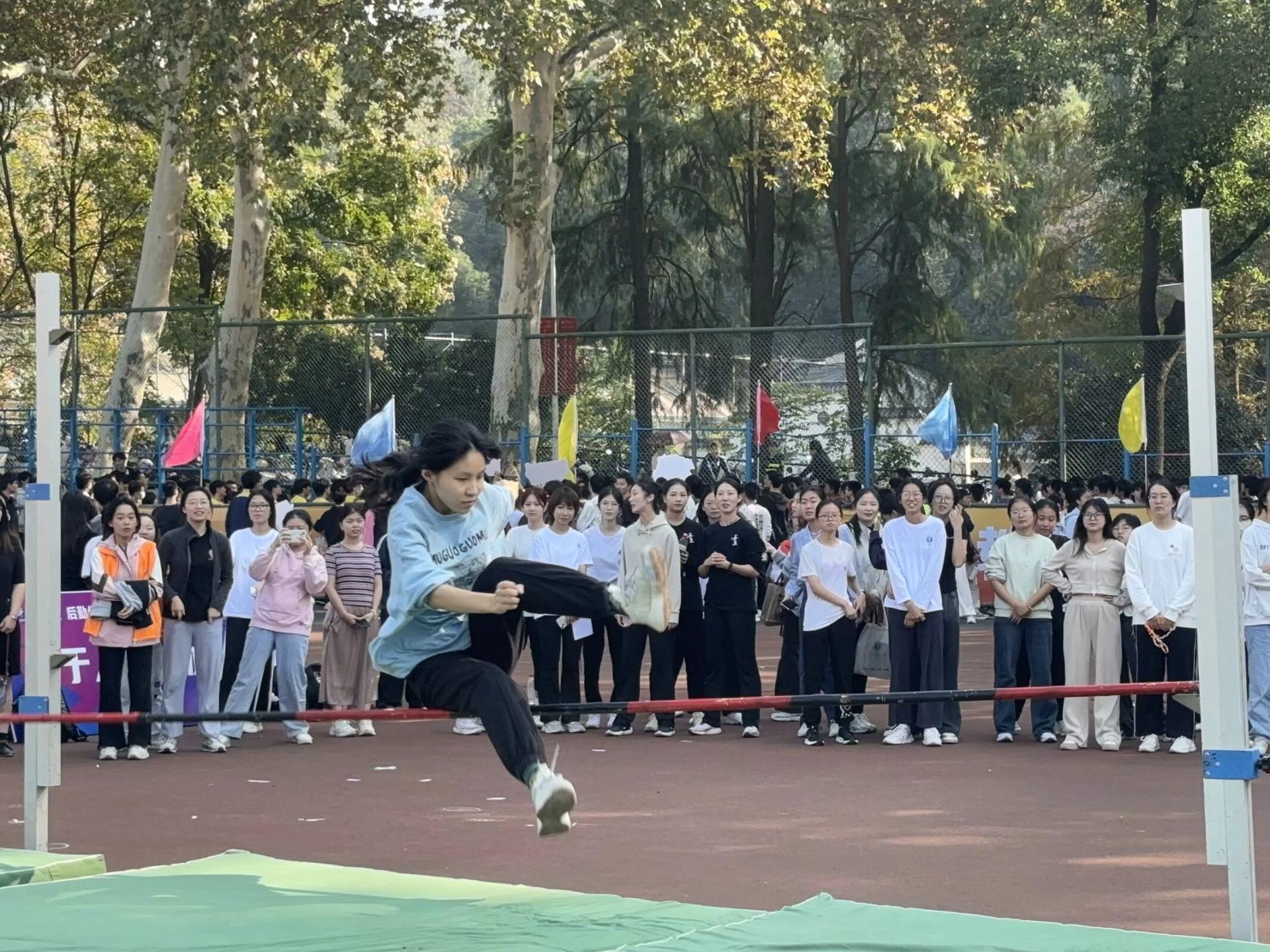 比赛开始后,现场气氛紧张热烈。化院健儿每一次助跑、起跳、过杆的动作都流畅自然,以优美的身姿和顽强的毅力征服了一个又一个高度。每一次高度的提升,都是对她们的巨大挑战,但她们眼神坚定,全力以赴,不断突破自我,展现化院运动员的拼搏精神。力量、技巧、勇气、信念在此刻交融,为观众带来精彩盛宴,欢呼与安慰加油声交织。