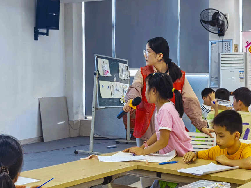 (图3:唐欣怡为学生们上课)