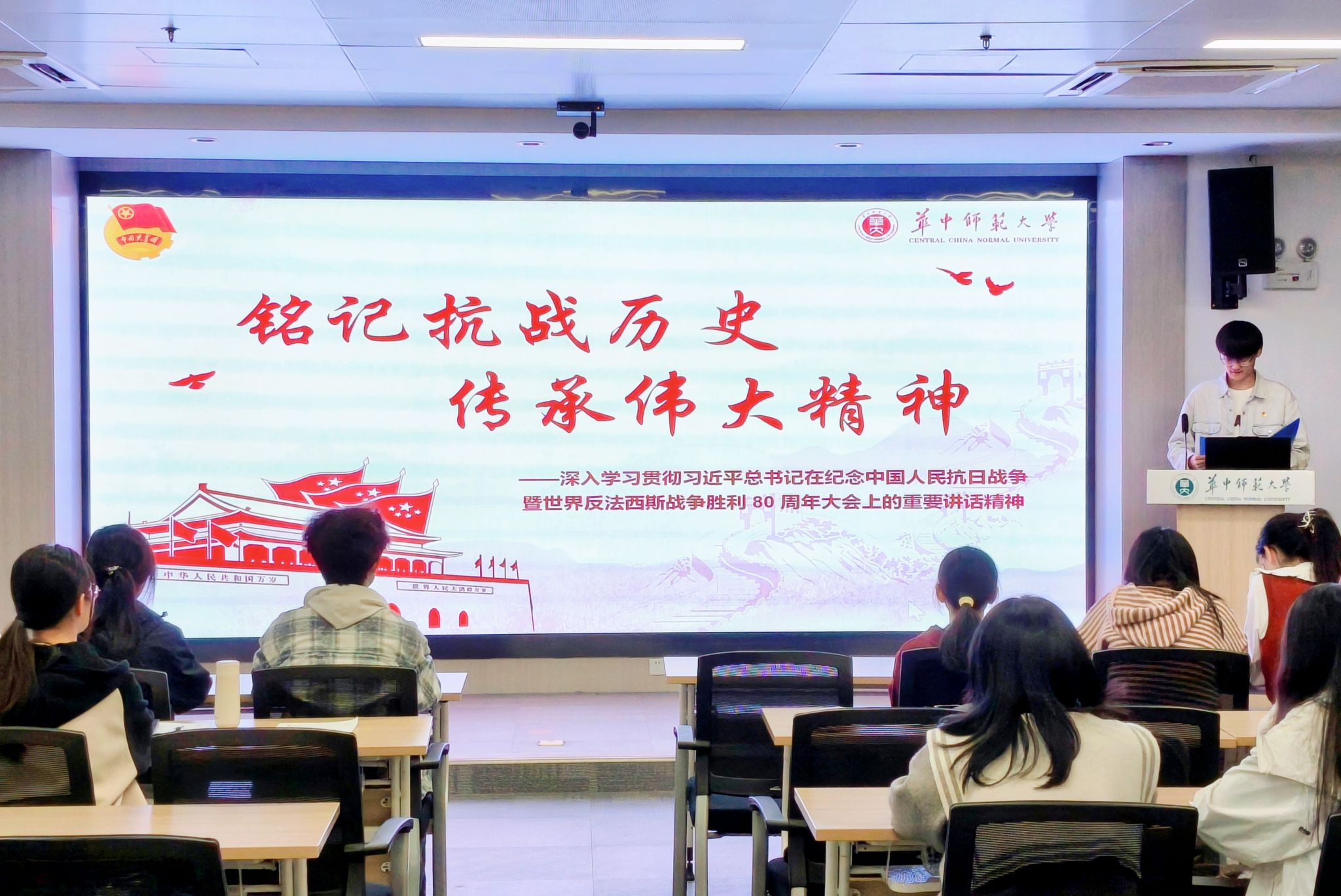 华大青年讯(通讯员 覃明凯 任宇彤 陈宇欣 李逸飞)为深入学习贯彻习近平总书记在纪念中国人民抗日战争暨世界反法西斯战争胜利80周年大会上的重要讲话精神,10月26日晚,计算机学院学生会功能型团支部于南湖综合楼N7119会议室开展“铭记抗战历史,传承伟大精神”主题团日活动。计算机学院团委学生会主要成员参与学习,活动由计算机学院团委组织部部长孟祥佑主讲。