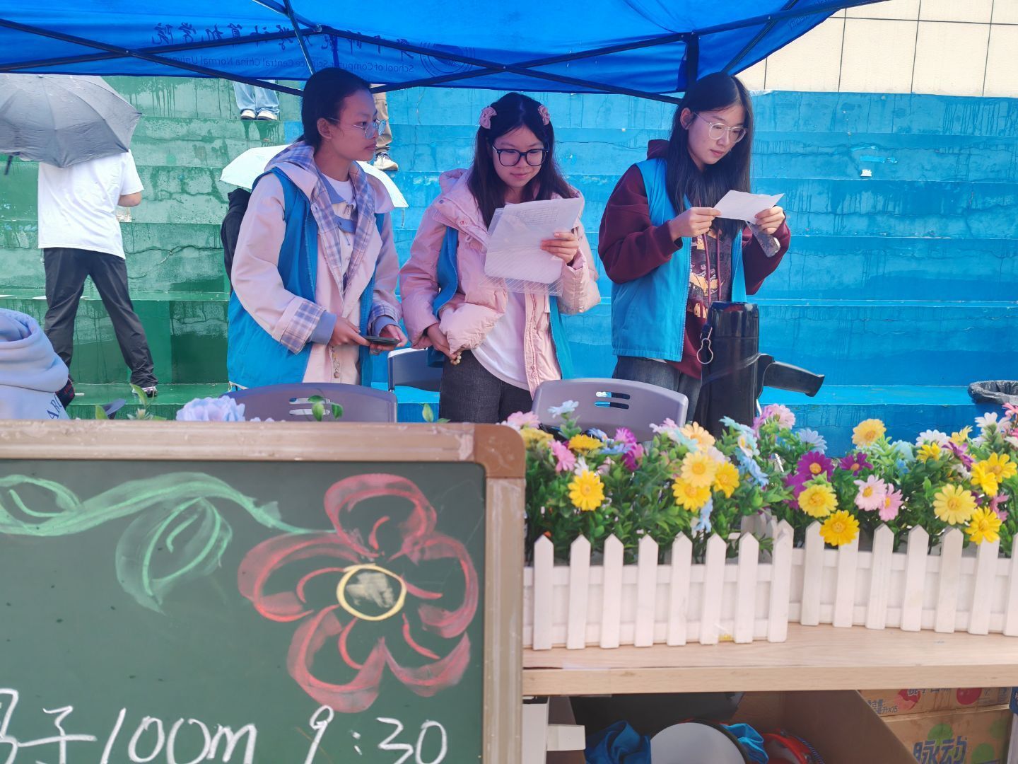 开幕式结束后,文体中心的工作者便迅速投入到学院大本营的布置工作中。从帐篷的搭建到创意装饰的设计,再到运动员物资的分类检查,他们将有限的空间打造成温馨的运动员后方“补给站”。同时,青年志愿者协会(下简称“青协”)的何芷妮、何健宇、李芊浔和杨晶欣在大本营处值班,随时响应运动员需求,确保各类紧急情况能够得到及时处理。