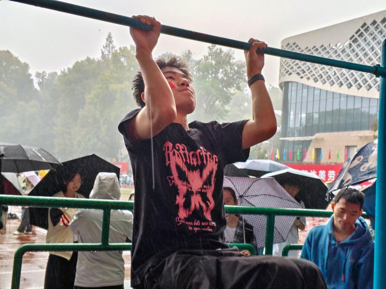 30日上午,男子引体向上比赛首先开赛。哨声响起,丁雨杭、陈悦东等30名运动员跃上单杠,双手紧握横杆,一次次有力拉起。细雨绵绵,选手们手心打滑,但眼神中仍透露出坚定与执着。每一次向上的牵引,都是对选手们力量和耐力的考验。赛后,阮成智同学表示:“身体确实很累,但还是想向上硬撑几次。”经过激烈角逐,计算机学院最终获得了团体第六名的好成绩。