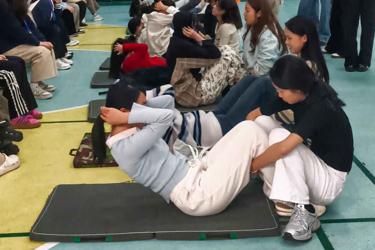 31日下午,女子仰卧起坐比赛接续进行。段一可、徐语彤等30名运动员在裁判令下迅速起坐,动作连贯流畅。比赛进入后半段,运动员们体力消耗巨大、呼吸逐渐急促,但她们咬紧牙关,用不屈的意志坚持到底。在这场与时间和体能的较量中,她们用行动诠释着毅力与担当。