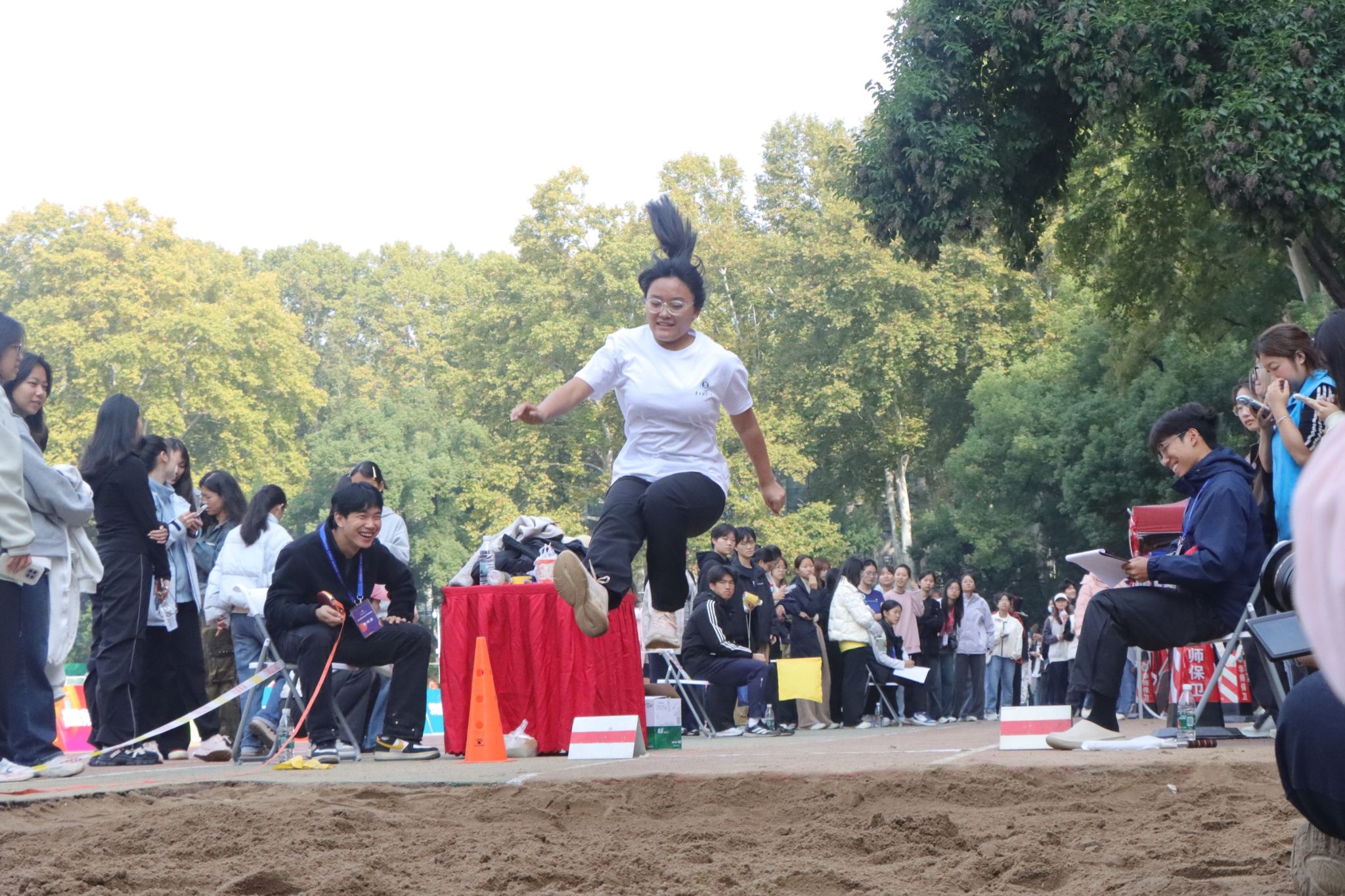 立定跳远比赛中,运动员们神情专注,彼此间相互鼓励。在赛场上,运动员们身姿挺拔、朝气蓬勃,奋力起跳,将速度与力量、协调性与爆发性集于一身。比赛在观众的呐喊惊叹声中渐进,运动员们力争最佳,为学院增光添彩。最终男子组以74.10米的总成绩取得团体项目第二的好成绩。