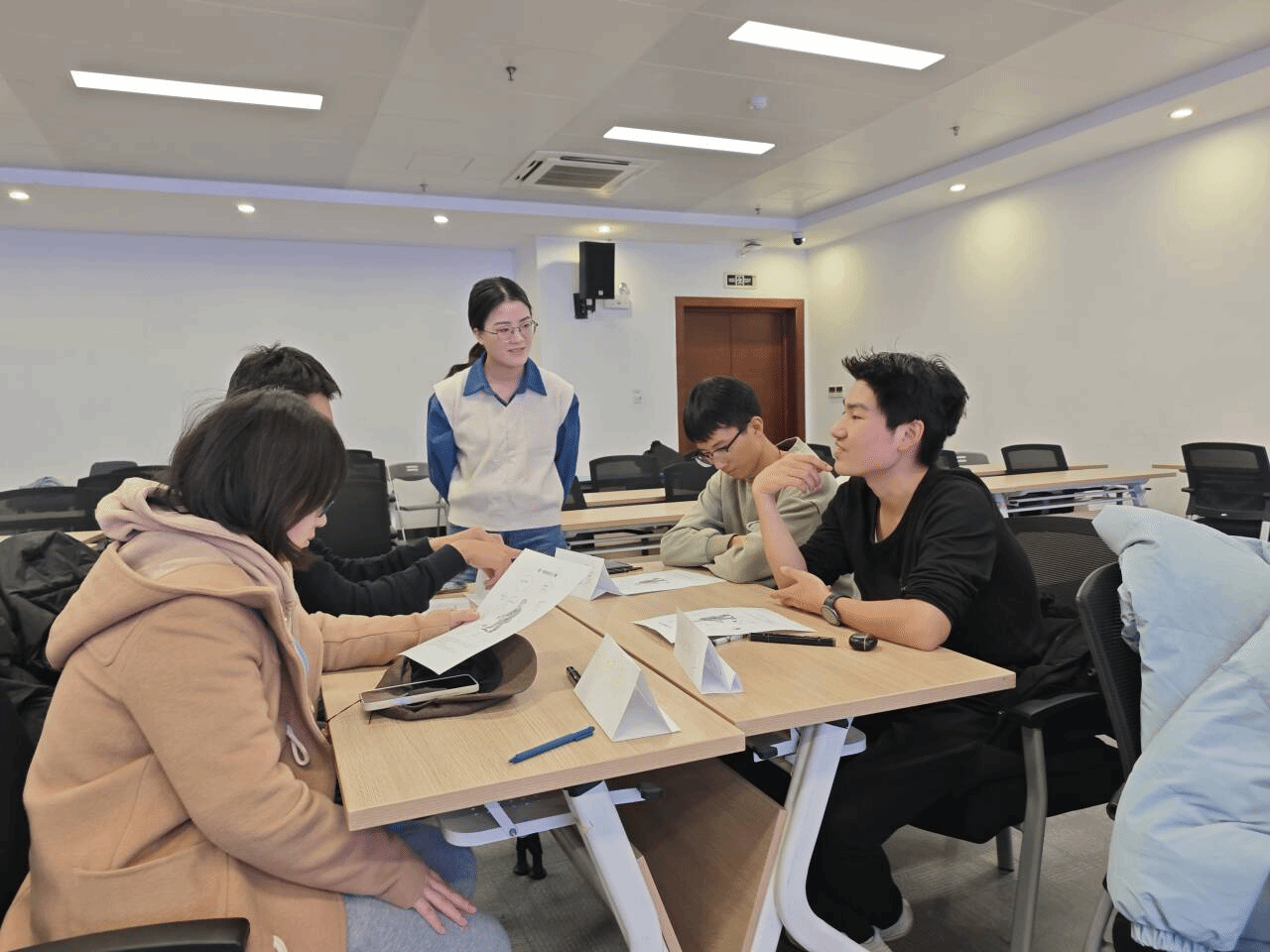 在覃露的引导下,参与者们首先通过压力测评问卷进一步厘清自身情绪状态,随后又分组围绕压力应对策略展开头脑风暴,并协作绘制“解压方法画报”。各组代表依次分享了多个维度的实用减压方法,丰富了在场同学的心理调适技能储备。
