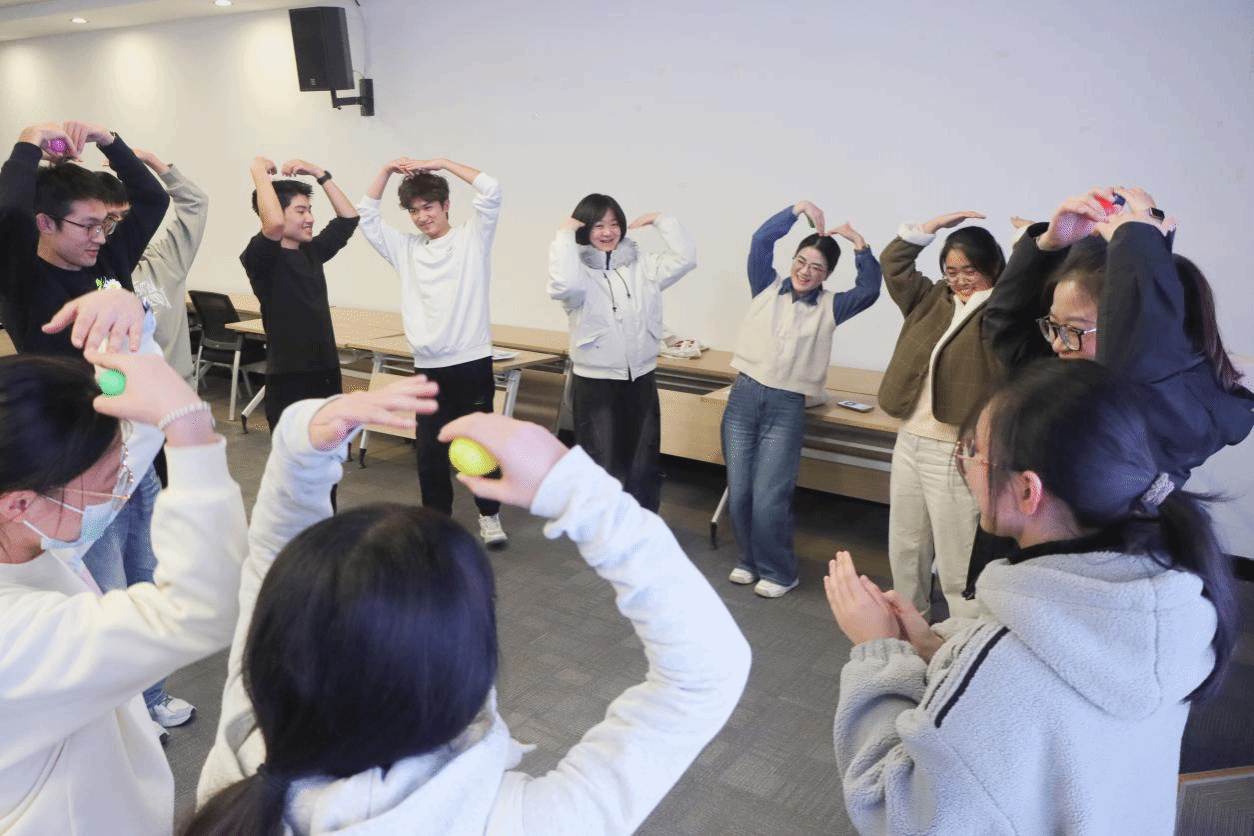 活动最后,全体成员围成象征凝聚与圆满的“同心圆”,一同参与“祝福传递”互动。在覃露的引导下,一枚承载关怀与支持的“鸡蛋沙球”在圆圈中依次传递,将温暖的祝福精准送达每位参与者手中。整场活动最终在融洽和睦的氛围中落下帷幕。