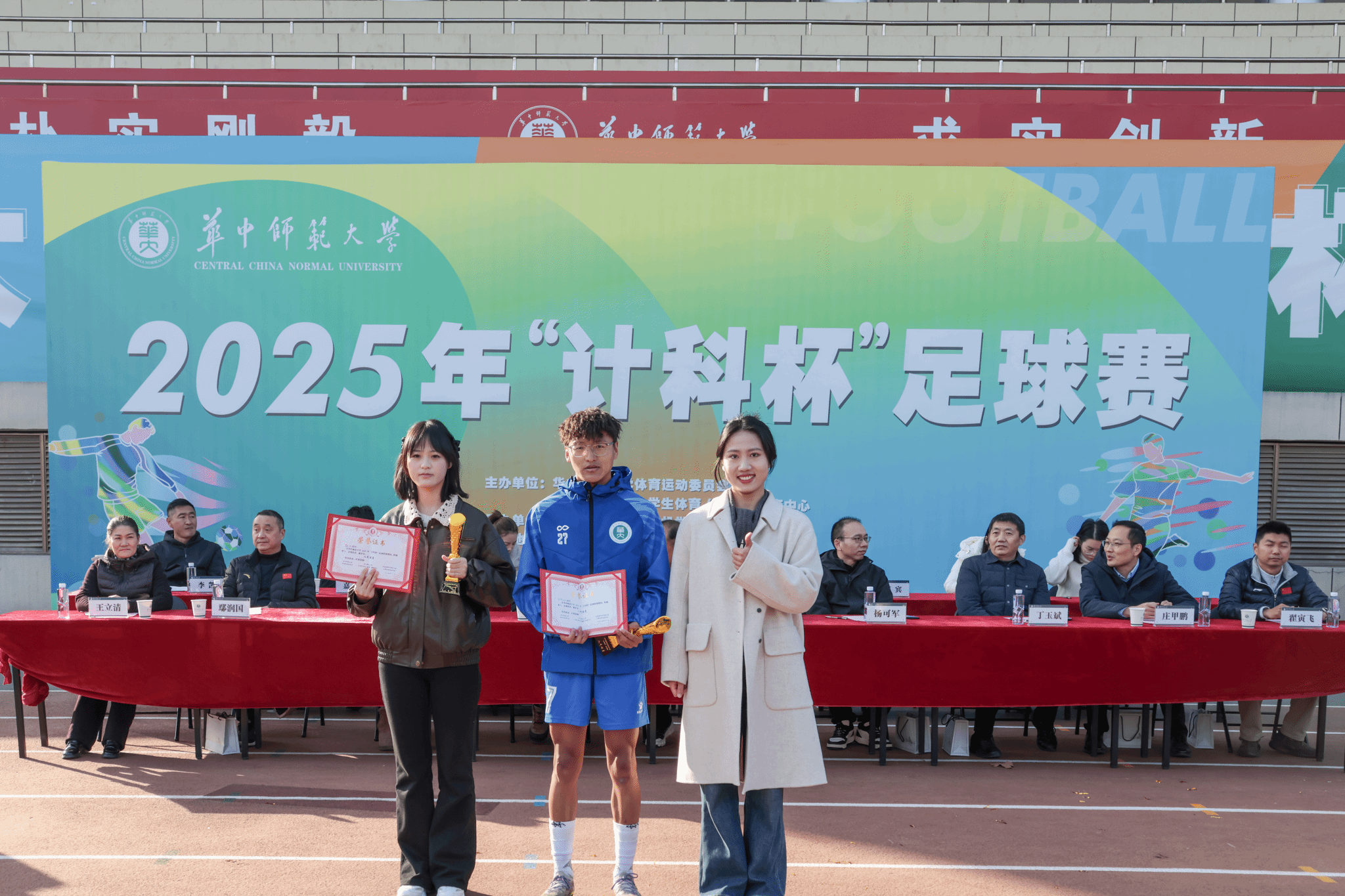 华大青年讯(通讯员 王玛茜 蒋璋源 田俊楠 陈雯潓 陈宇欣 李逸飞)12月14日下午,由华中师范大学体育运动委员会、华中师范大学大学生体育(健康)教育中心主办,计算机学院承办的华中师范大学2025年“计科杯”足球赛闭幕式暨颁奖仪式于佑铭体育场举行。