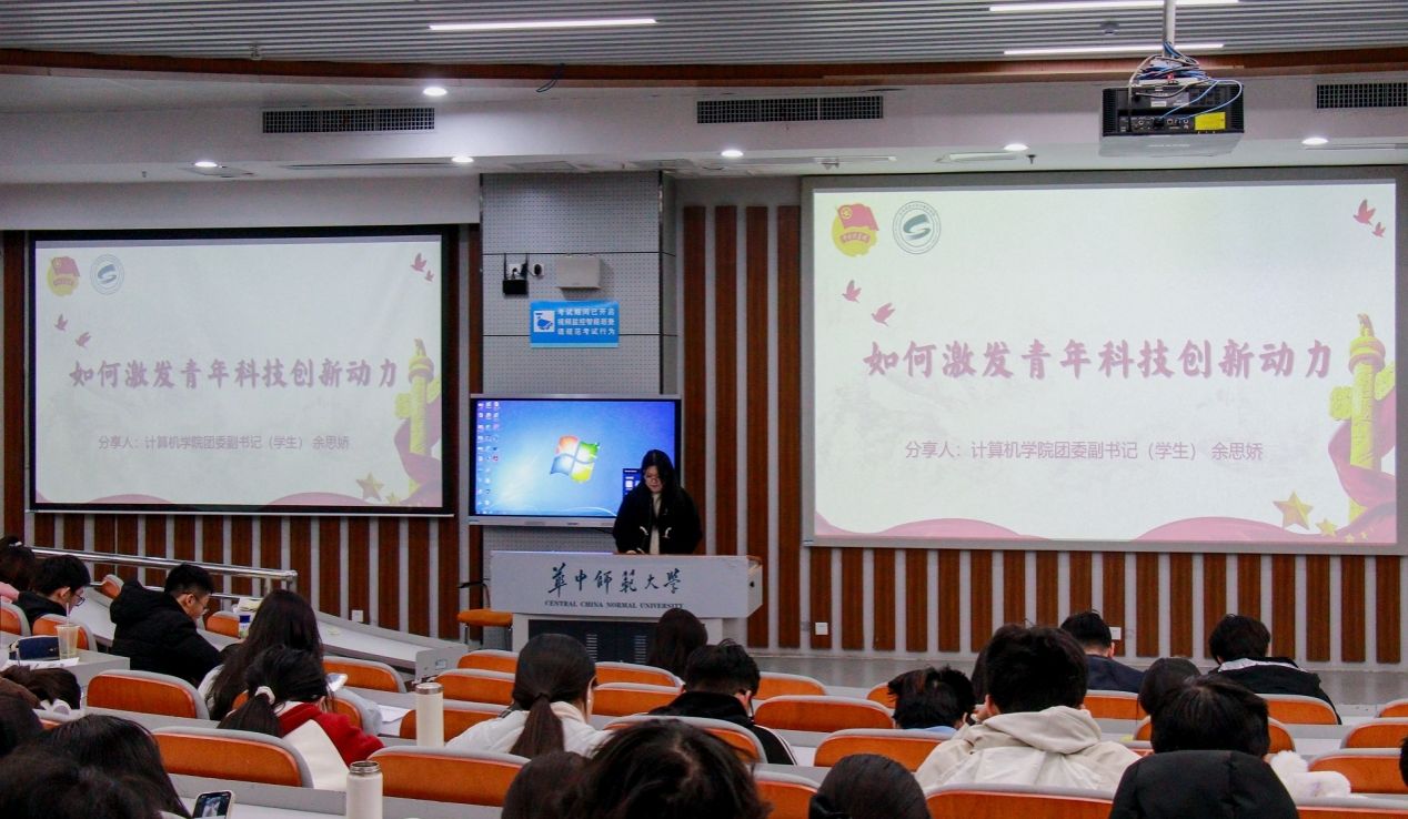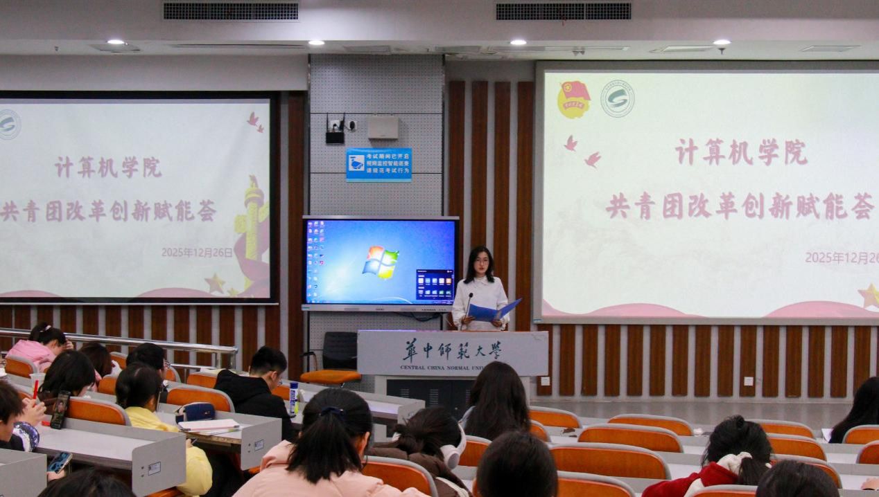 华大青年讯(通讯员 覃明凯 刘峻滔 陈宇欣 陈雯潓 李逸飞)为激发团学骨干创新活力、提升团员骨干综合素养,12月26日,由共青团华中师范大学委员会主办、共青团华中师范大学计算机学院委员会承办的2025年第25期共青团改革创新赋能荟于南湖综合楼N107教室举行。本期赋能荟以“团员青年助力科技创新”为主题,由学院团委书记肖克、团委副书记(学生)余思娇与李逸飞作经验分享。活动由学院团委组织部部长王翊萱主持。