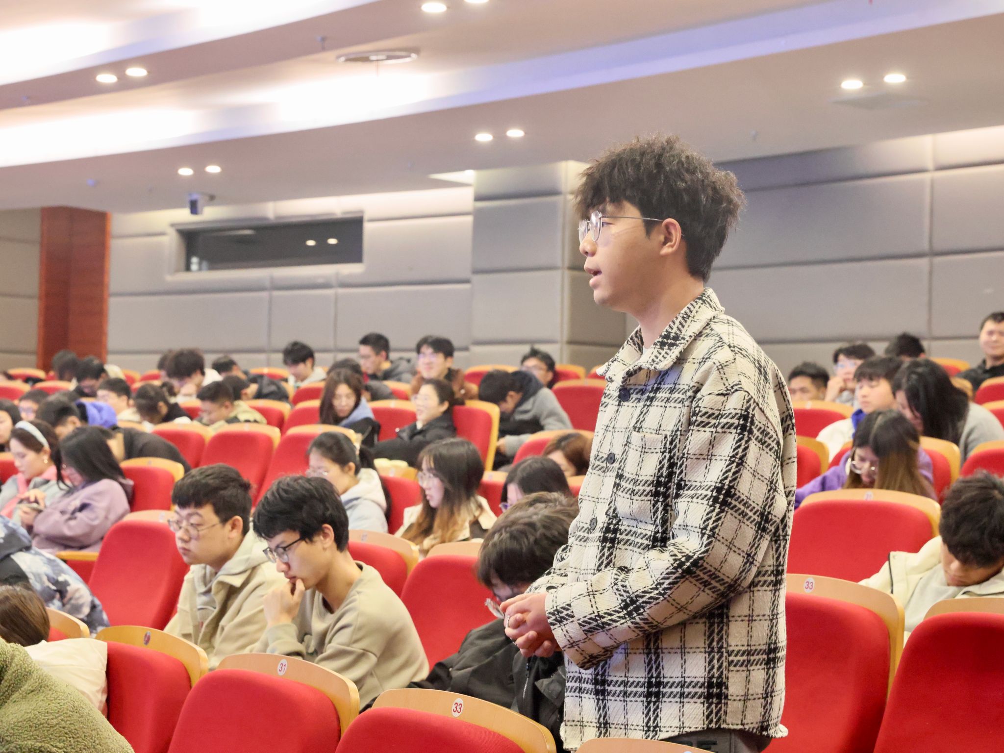 在互动问答环节,针对同学们的求职疑惑,徐东磊着重阐述了两个关键点:首先,他强调了内驱力的重要性,指出将个人特长与兴趣巧妙融入岗位选择,是解锁职业发展潜力的关键所在。其次,他提到真诚的重要性远超技巧,唯有通过真诚的自我展示与有效沟通,才能在职场中构筑起长期且稳固的职业联系。