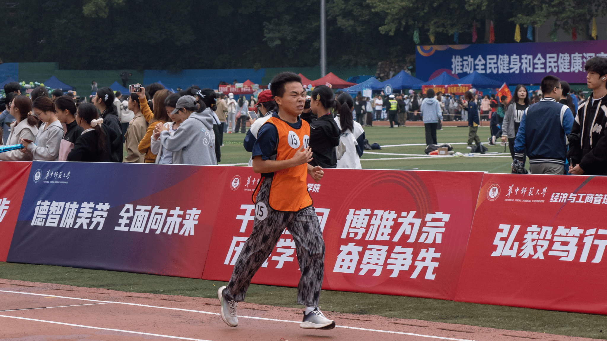 随后出场的罗欣杭与王旭峰同样面临耐力考验。尽管与其他选手存在差距,他们始终未言放弃,咬牙坚持、奋力前行。赛道旁,教育学院志愿者们高举加油牌,助威声时时传来。