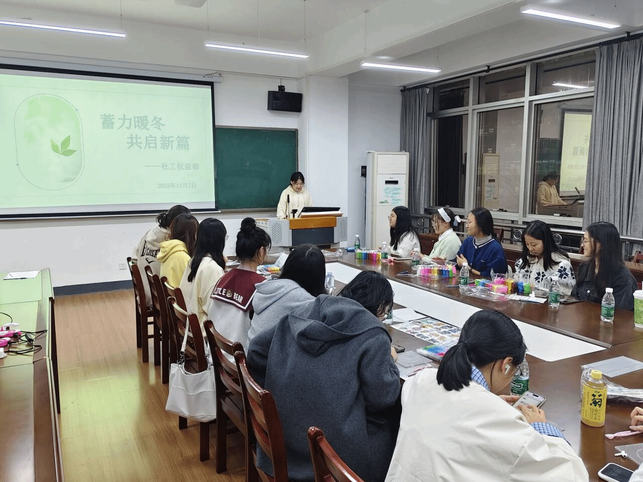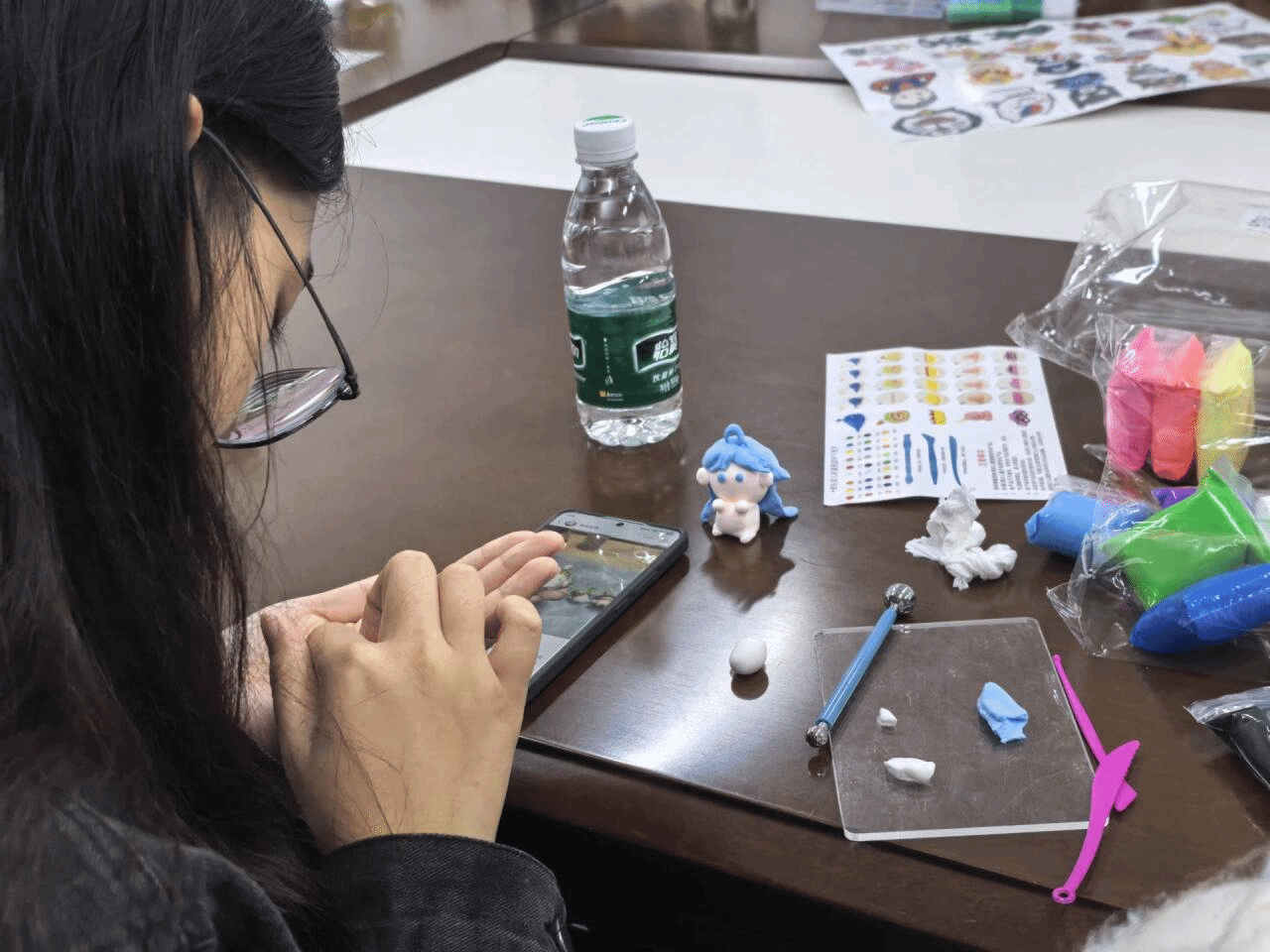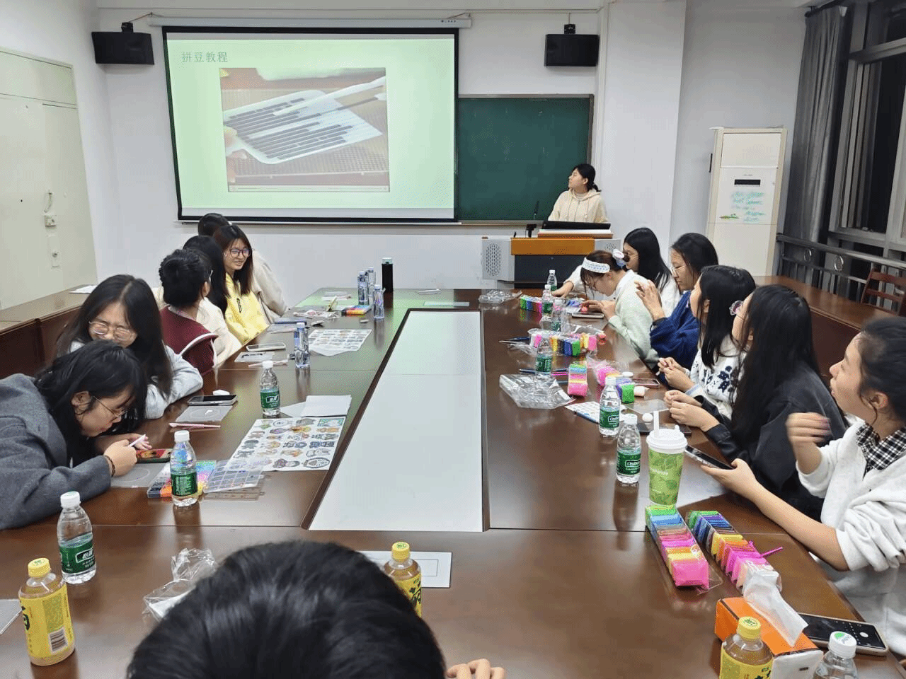 主持人围绕立冬节气的文化内涵与心灵疗愈意义展开讲解,帮助同学们在了解冬至传统习俗的同时,鼓励大家静心投入手工创作,在过程中释放压力、放松心情,完成对自我的心灵疗愈。参与者被分为黏土制作与拼豆手工两组,在领取相应材料后,认真听取了手工制作的方法与注意事项,为接下来的创作做好准备。