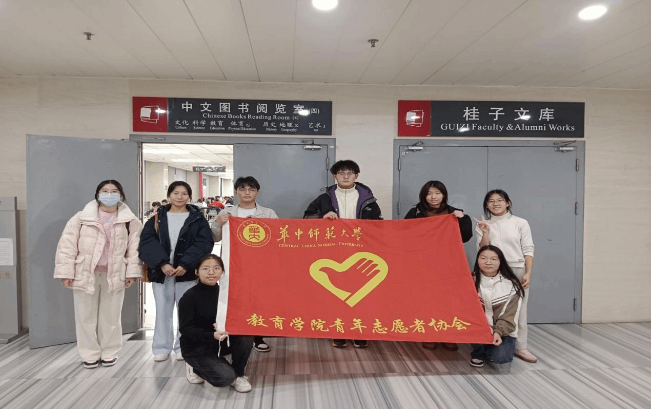 华大青年讯(通讯员 邹蓓蕾 诸家驹 徐思雨)为弘扬“奉献、友爱、互助、进步”的志愿精神,落实“服务育人”理念,助力校园书香文化建设,12月5日下午,华中师范大学校图书馆开展志愿服务活动。教育学院青年志愿者协会组织8名志愿者参与本次活动。