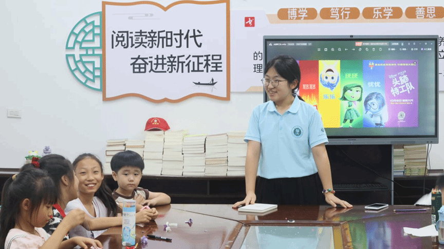 在“情绪小管家”环节,志愿者魏凯亚组织全体成员观看了经典动画电影《头脑特工队》。影片以生动有趣的方式为孩子们展现了情绪如何影响个人的行为和决策。