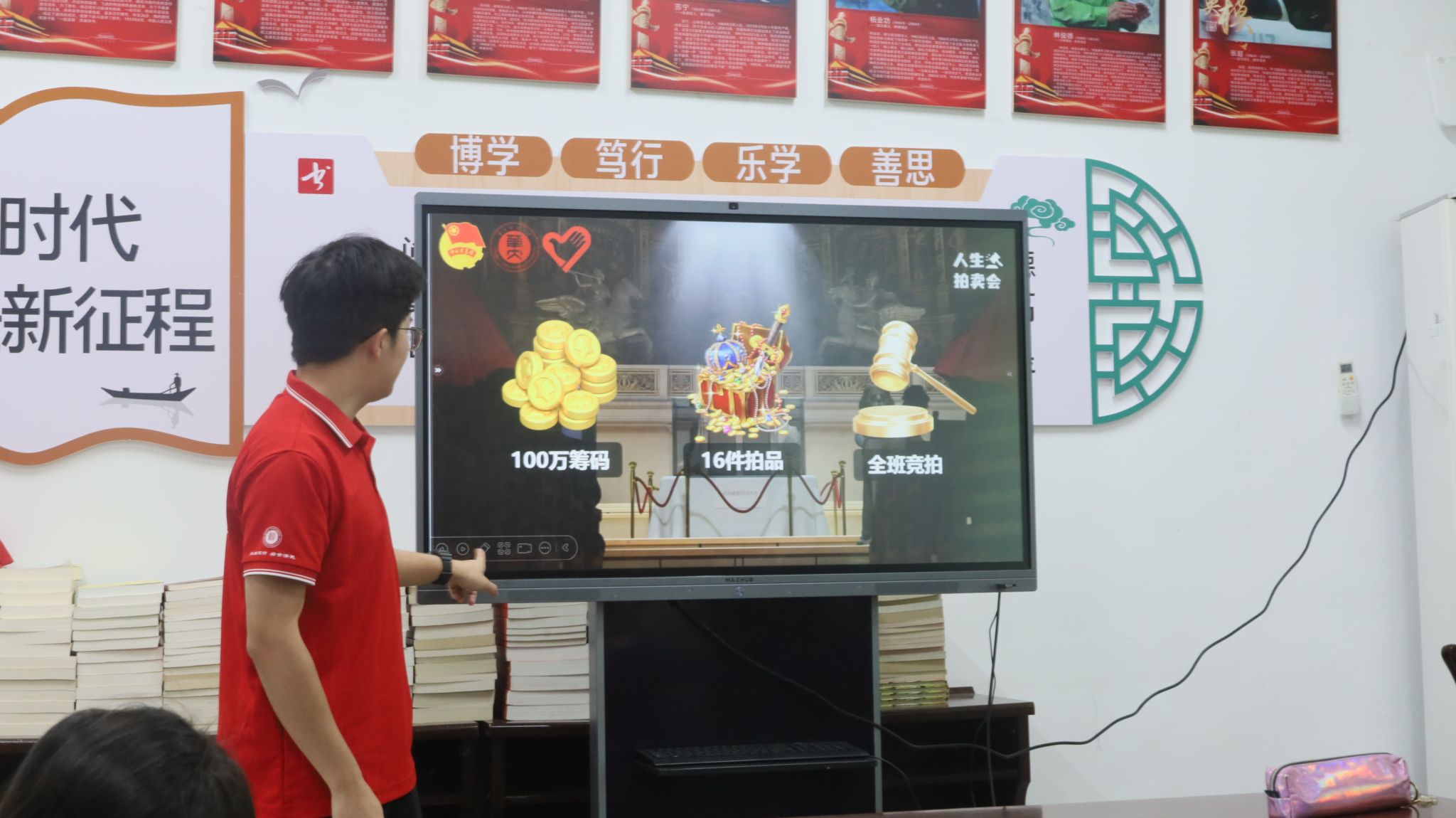 在上午的人生拍卖会课堂上,志愿者舒代平首先为同学们讲解了基本的拍卖规则与流程。同学们手持拍卖基金,面对诸如“健康”“财富”“友情”“智慧”等人生关键词展开激烈竞拍。有的同学以高价拍下了“快乐”,有的同学则认为“健康”是最重要的,在激烈的讨论中,同学们深刻体会到人生抉择的多样性与重要性,也学会了权衡与取舍。