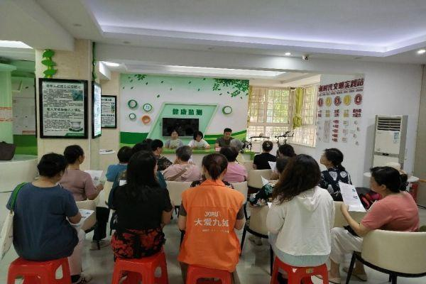 随后,志愿者们通过室内室外结合的方式在社区广场和居民活动室进行集中宣传宣讲。志愿者们首先以案例讲述的形式向老人们介绍诈骗分子的常用手段、防范电信诈骗的方法以及遭受电信诈骗时的求助方式。同时,社区的老人们也分享了自己遇到诈骗电话的经历,以及自己的处理方法。在倾听社区老人的诉述后,志愿者们耐心分析并讲解了该如何应对和处理这些情况。