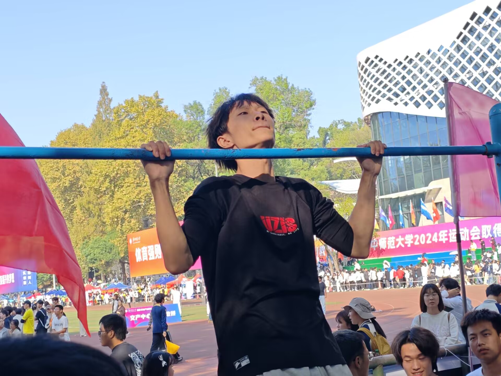 在引体向上赛场上,经管学子个个精神抖擞,斗志昂扬;在单杠下,他们摩拳擦掌,跃跃欲试。随着裁判一声令下,选手们双手紧握横杆,奋力向上拉起,展现出顽强的毅力和惊人的力量。他们的每一次发力,都是对自我的挑战;每一次上升,都是极限的突破。额头上的汗珠闪烁着拼搏的光芒,手臂上紧绷的肌肉彰显出青春的活力。大家的加油、呐喊此起彼伏,为选手们注入了无穷的动力。在这里,选手们的力量与勇气交织。引体向上,挑战力量极限;拼搏赛场,尽显经管锋芒。