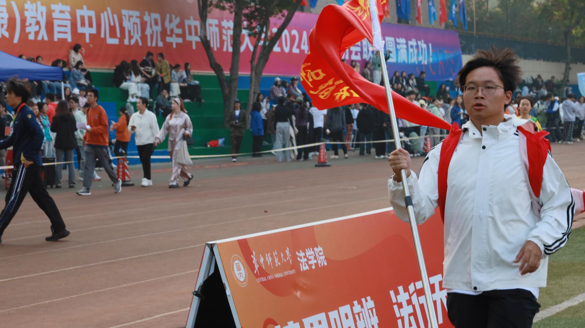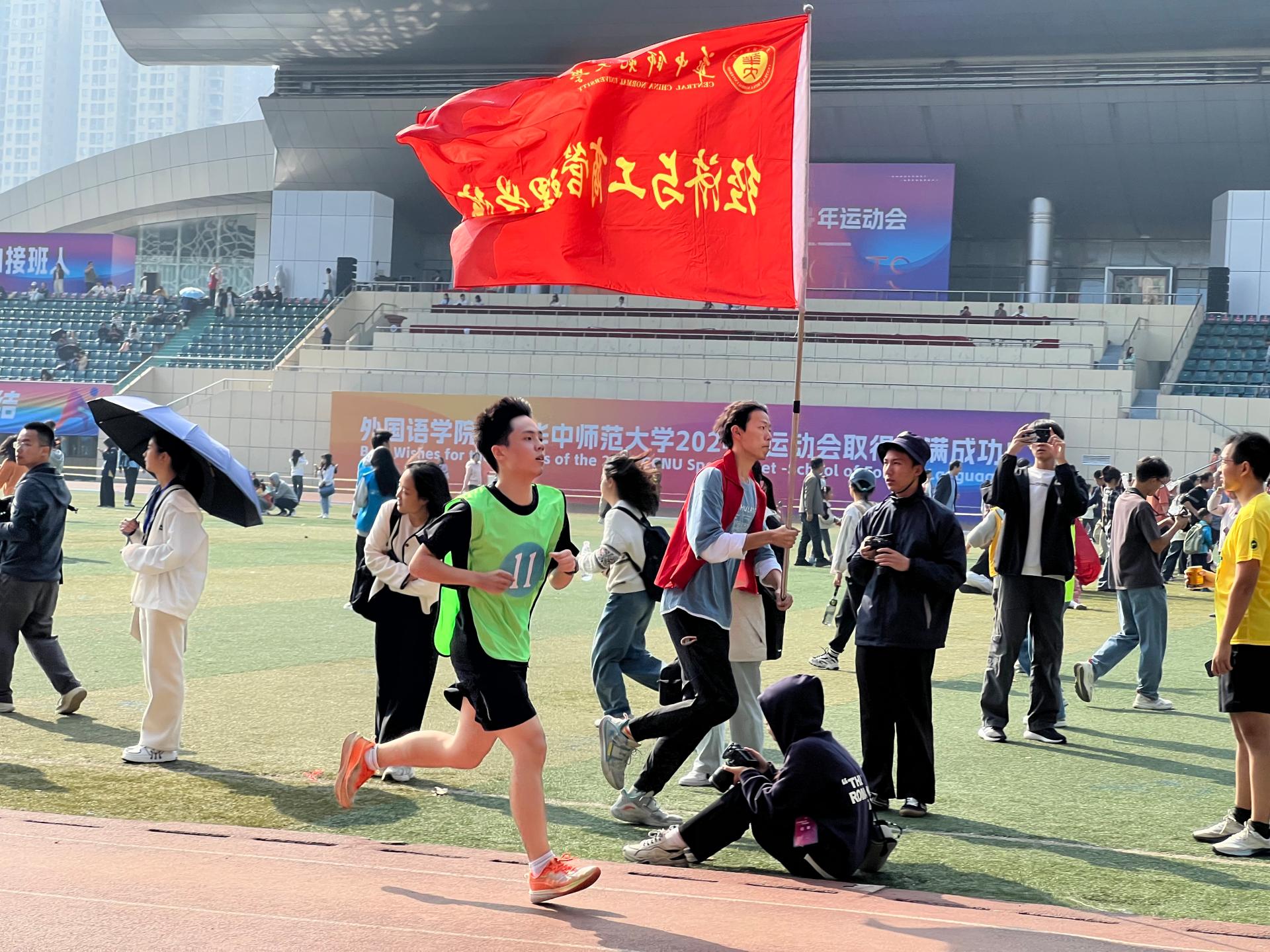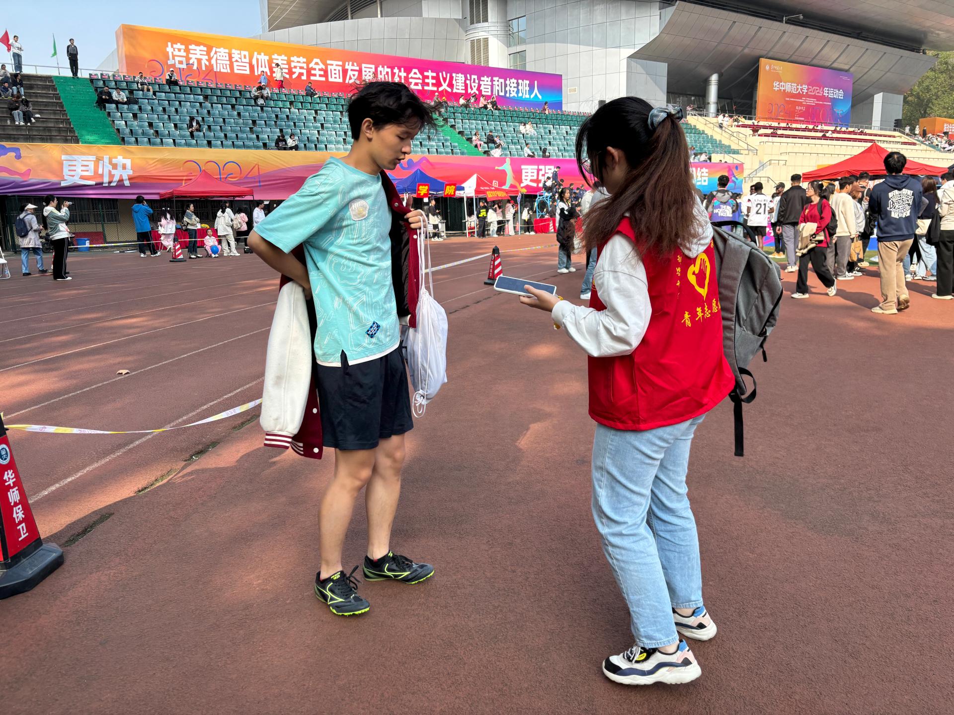 华大青年讯(通讯员 黄青梅)在秋日暖阳的沐浴中,在秋风的召唤下,华中师范大学2024年运动会如期举行。经济与工商管理学院(以下简称“经管学院”)的运动健儿们在赛场上奋勇争光,勇夺佳绩。在好成绩的背后,除了奋力冲向胜利的运动员,那一团团的红色火焰——经管学院志愿者们更起了奠定胜利的基石作用。他们身穿红色马甲,佩戴工作证,为运动员们加油助威,他们用满心真意换情满校园;他们居于幕后,穿梭在操场内外,为运动员们保驾护航;他们话语温柔,脸上洋溢着笑容,为经管学子们贴心服务。他们有一份热,便发一份光。