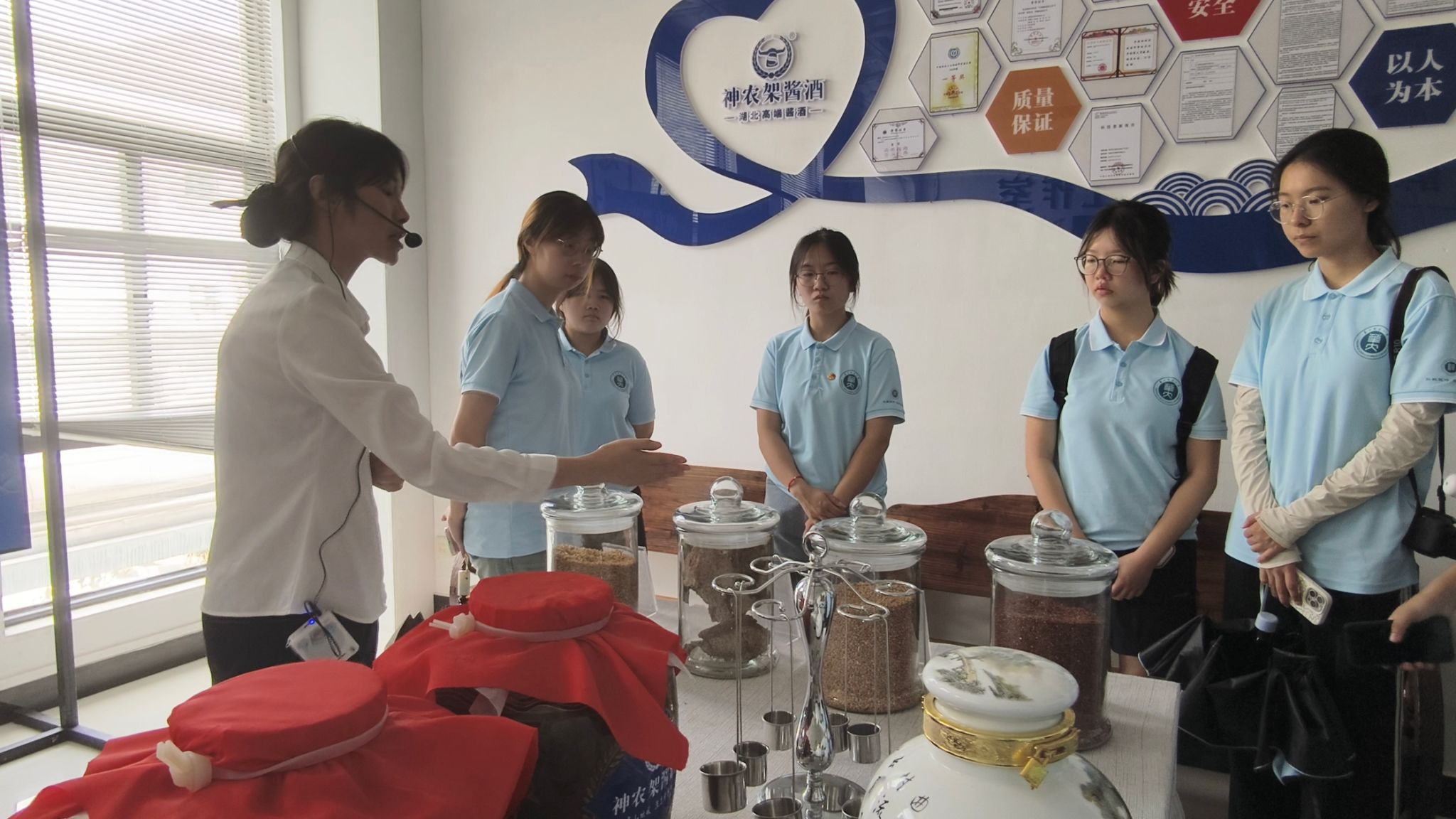 调研最后一站,实践队前往神农架生态酒业有限公司。在酿酒生产车间,队员们系统学习传统酿酒工艺与现代生产技术融合的完整流程,围绕发酵工艺、蒸馏技术等环节与技术人员展开深入探讨,并通过产品品鉴直观感受企业特色产品魅力。