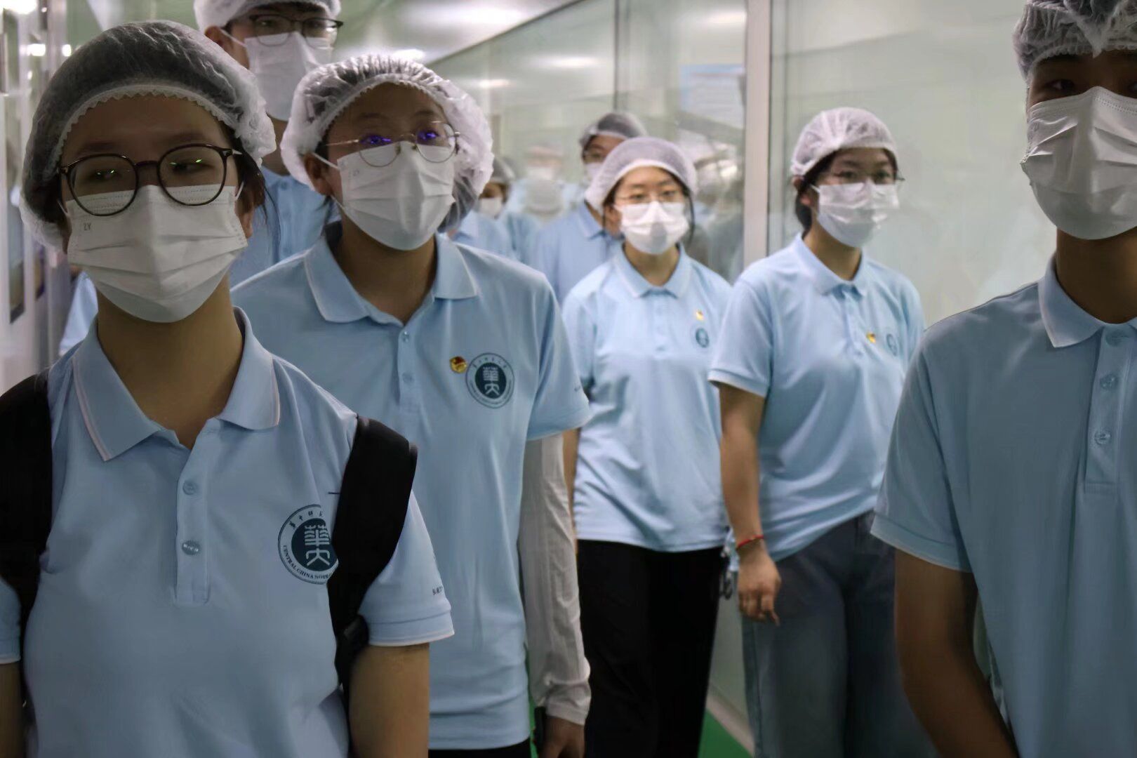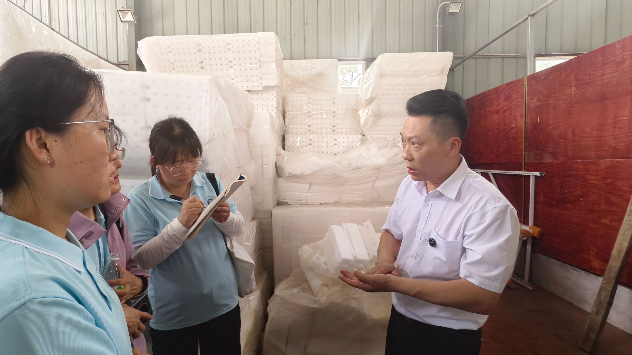 图2:鸿鹄实践队倾听公司负责人介绍产品包装情况