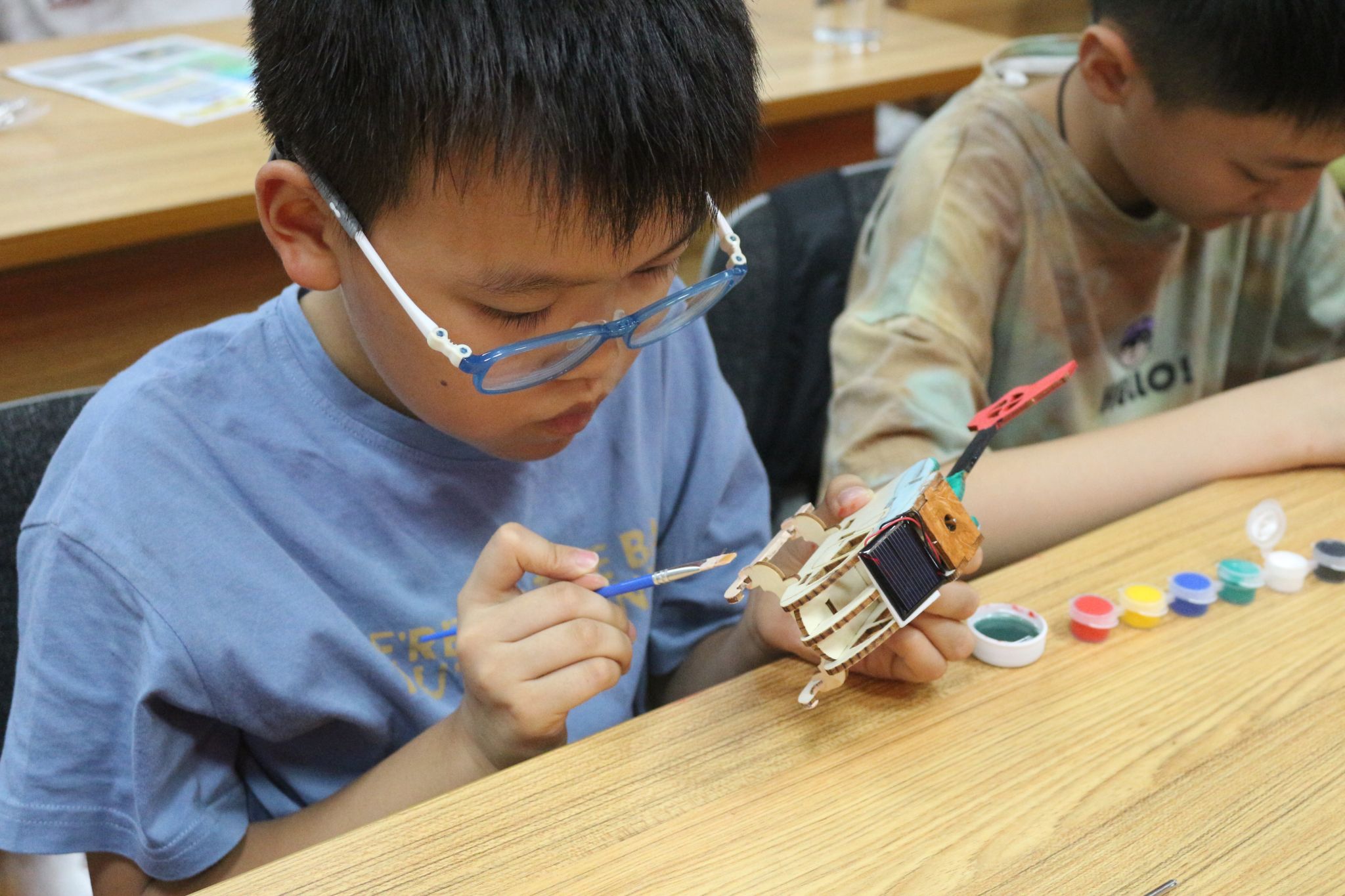 下午,活动以太阳能飞机模型的拼接与涂鸦为主题。孩子们两人一组,按照步骤固定机身、安装机翼,相互配合完成模型的组装。遇到问题时共同讨论或向支教队员寻求帮助。完成组装后,进入创意涂鸦环节,每个小组都为其模型上色。各小组的作品风格各异,展现出儿童的想象力和创造力。这一活动不仅锻炼了小朋友们的动手能力,更让团队协作的意义在互动中深深扎根。