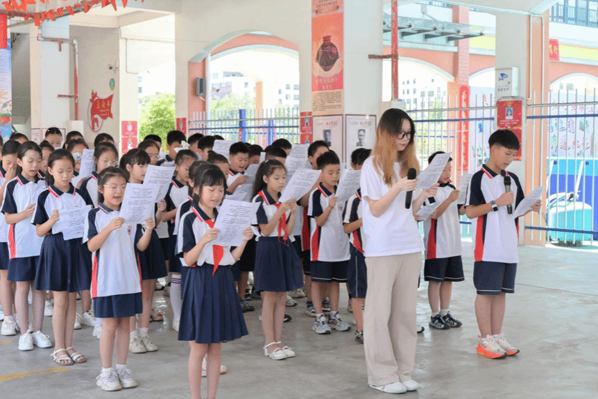 华大青年讯(通讯员 任梦雅 肖茹匀 吴玥彤)为丰富学生的暑期生活,传递知识与温暖,7月25日,历史文化学院萤火服务队在孝昌县关王小学举办“童心筑梦,萤火同行”文艺汇演活动,给为期20天的暑期支教画上圆满句号。本次汇演由萤火服务队队员与关王小学学生共同呈现,涵盖朗诵、声乐、器乐、武术、舞蹈及书画展示,300余名师生家长齐聚校园,见证孩子们在艺术舞台上的成长绽放。