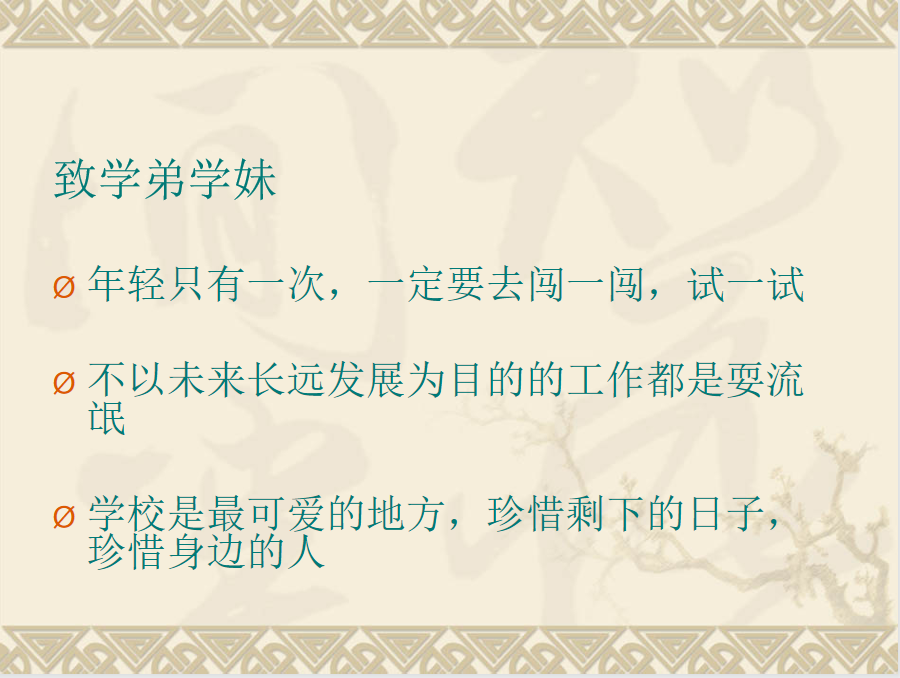 就业是每位学子都会面对的机遇和挑战。“鹏北海,凤朝阳,又携书剑路茫茫”,历院学子应如刘洋和张志荣所言,多读书、多上台、多完善自身,做好充足准备去迎接挑战、把握机遇,不吝惜努力与汗水,同时也相信自己的付出终会迎来回报。