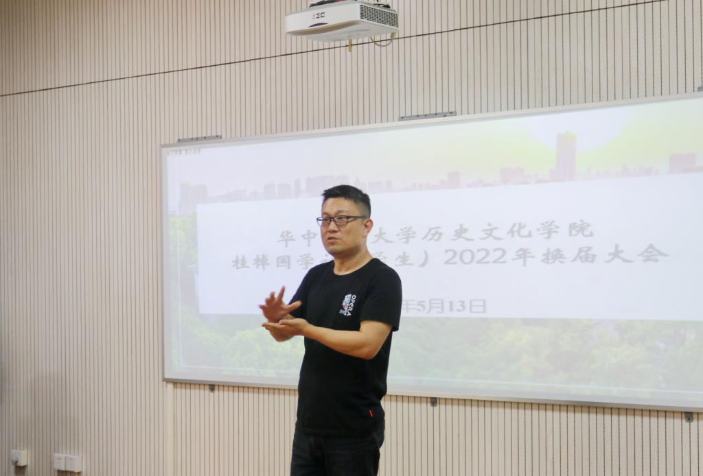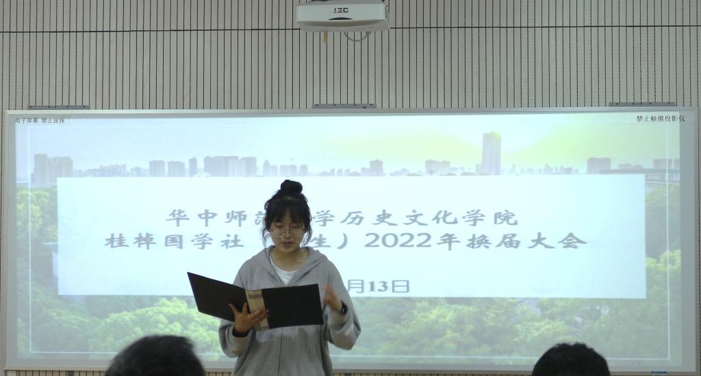 华大青年讯(通讯员 符云媛 孙龚泽 郭淑怡 谢翘鸿)5月13日下午,桂棹国学社(学生)换届大会在1215教室举行。本次活动由历史文化学院团委副书记谢翘鸿主持,出席本次活动的嘉宾有桂棹国学社指导老师许刚、历史文化学院团委书记钟佩文、校团委志愿服务与社会实践部副部长张聿佳等。