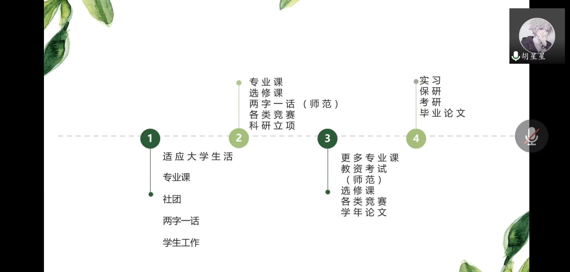 关于师范生的历史专业学习方法,胡星星从大学学习的规划出发,系统地介绍了日常学习方法,此外,她为学生们解读了历院评优评先细则,建议大家有选择地参加活动;贤悦则分别从师范生和非师范生的角度提出了针对性建议,她倡导学生们积极参加锻炼师范生技能的相关活动,在锻炼师范生技能的同时也要夯实专业基础,增强历史素养。