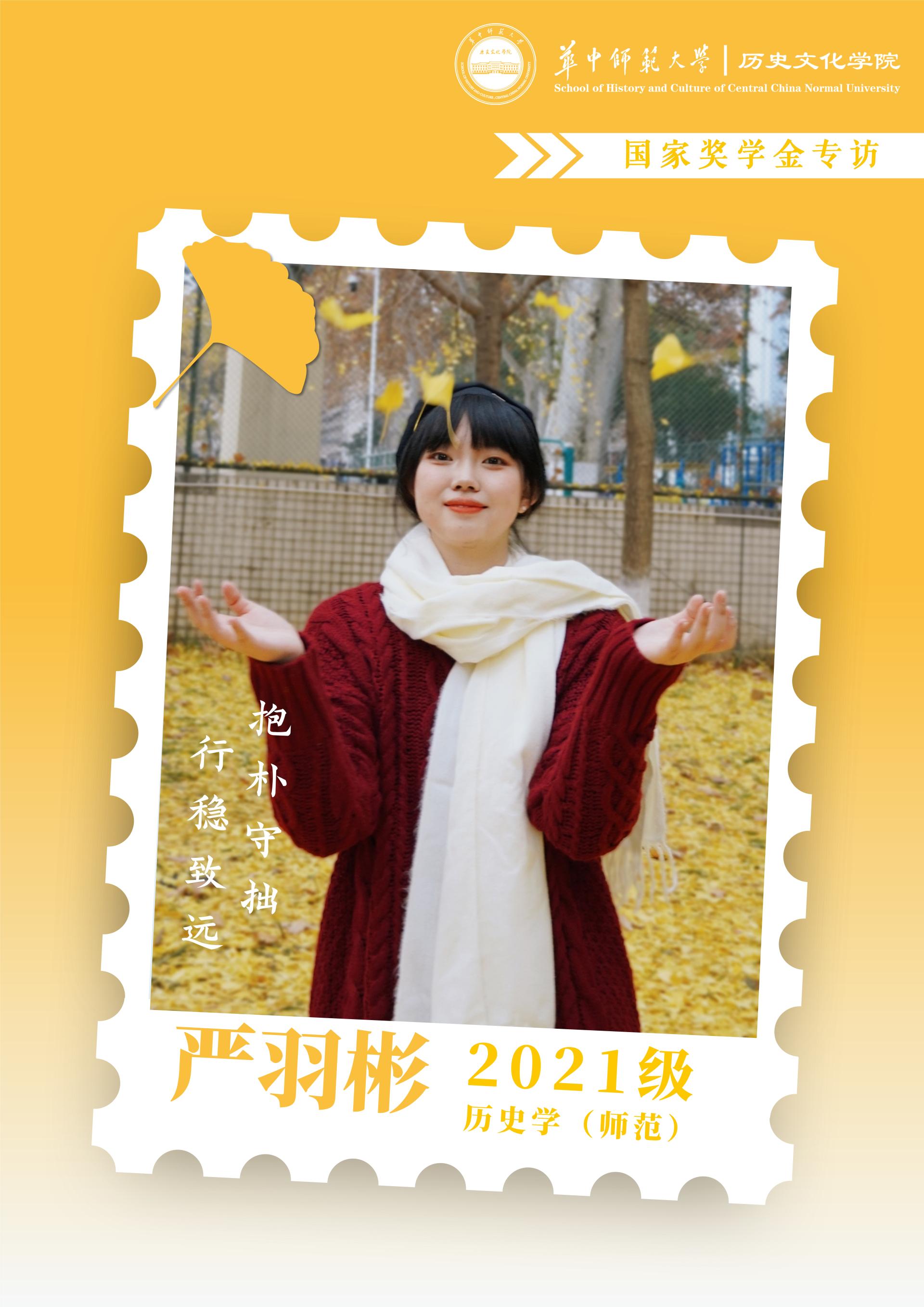 在谈到自己当初为何会选择历史学公费师范专业时,严羽彬毫不犹豫答到是中学历史老师的影响。中学时期幽默风趣、循循善诱的历史老师给她心中埋下了一颗历史学的种子,受到老师的感染,严羽彬想要亲近历史,走进历史,揭开历史学的神秘面纱,同时也想像她一样,切身体会作为历史教师教书育人的责任与使命。