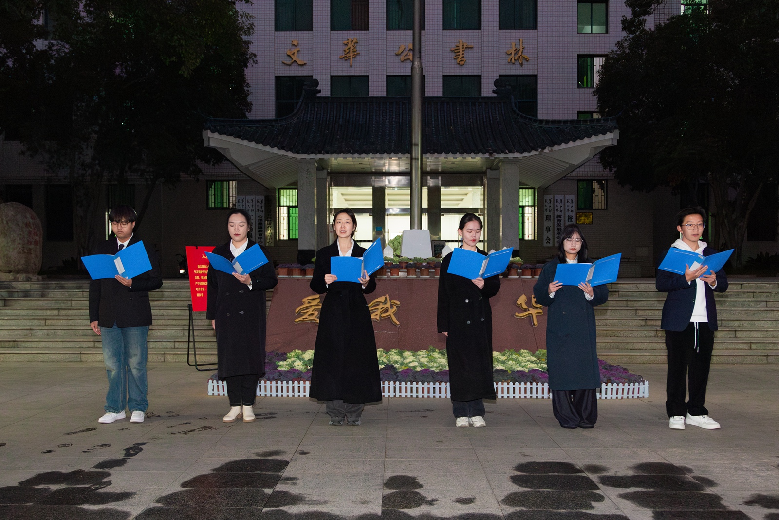 升旗仪式结束后,学院本科生党支部成员以饱满的热情和真挚的情感,朗诵了《青春中国》。他们回溯了祖国的光辉历史,展望了民族的璀璨未来,抒发了对祖国的拳拳深情与美好祈愿。深情的朗诵,点燃了在场师生的爱国热忱,让每个人的心中都充满了对祖国的热爱。