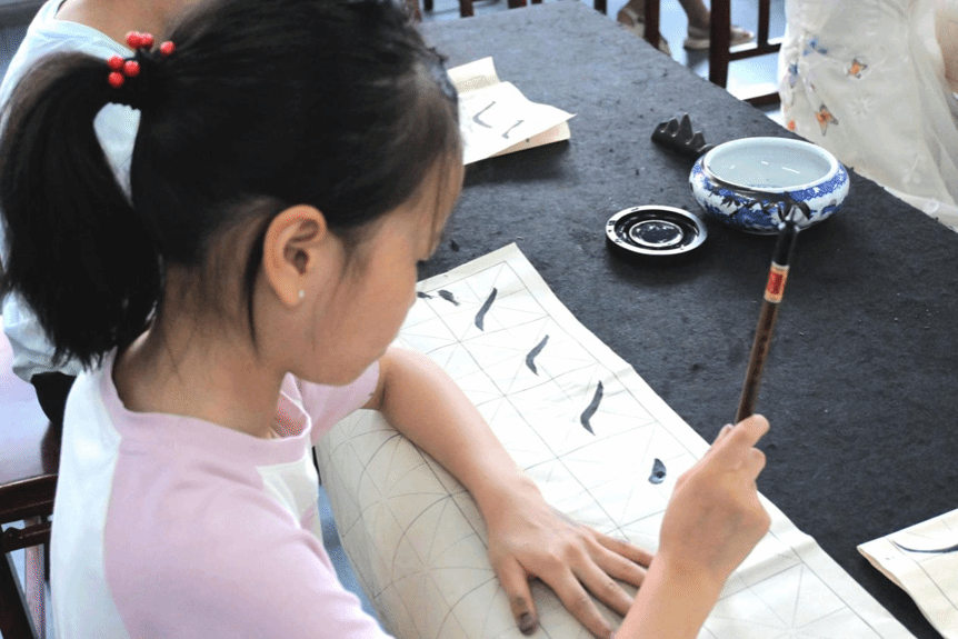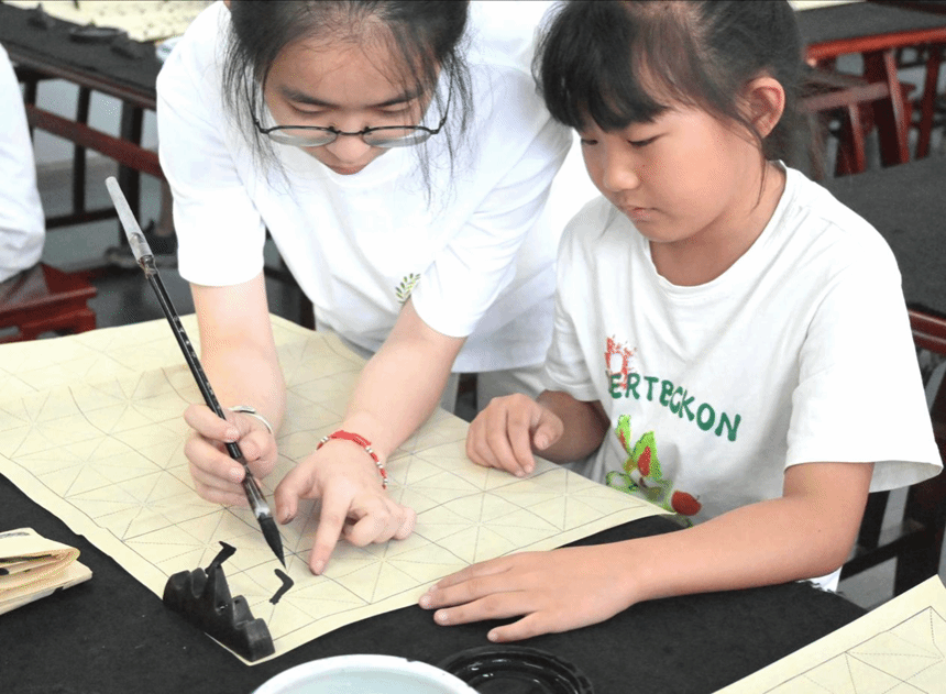 习字正身,涤笔收心。课程尾声,孩子们在李菲菲的带领下,再次进行“洗笔”。在一静一动、一洗一练间,学生们不仅学习了软笔书法的基本笔画,对书法文化也有了更深刻的感悟。学习软笔书法不仅是技艺的锤炼,更是文化认同、审美启蒙与人格塑造的综合性教育过程。在接下来的暑期学堂中,历史文化学院萤火服务队队员将继续怀揣热忱之心,手持点点萤光,为学生筑牢文化根基,点亮成长之路。