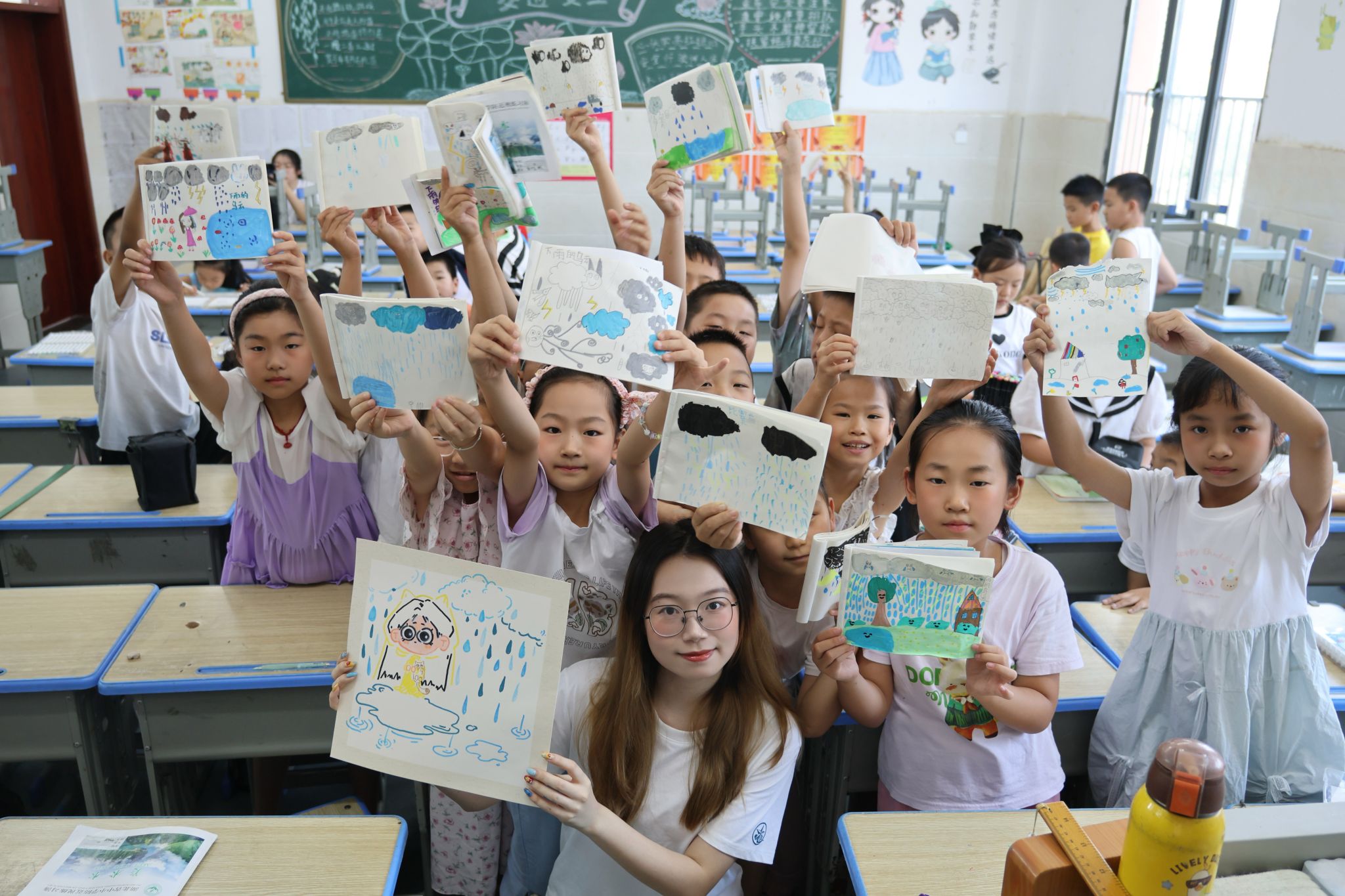 在课程的末尾,孩子们积极展示自己的作品,在交流中感受艺术创作的乐趣。谭雪迎从构图、配色、故事性等方面进行点评,引导孩子们发现作品中的亮点,培养审美能力。本次课程将自然科学与美术教育相结合,既帮助孩子们了解了云朵和雨水的形成原理,又提升了观察力与创造力。萤火服务队将继续深耕乡村儿童教育需求,结合队员专业所长,设计更多融合科学、艺术、文化等多领域的特色课程,让知识的种子在孩子们心中生根发芽,用持续的陪伴与创新的教学,为他们的成长之路增添更多光亮与可能。
